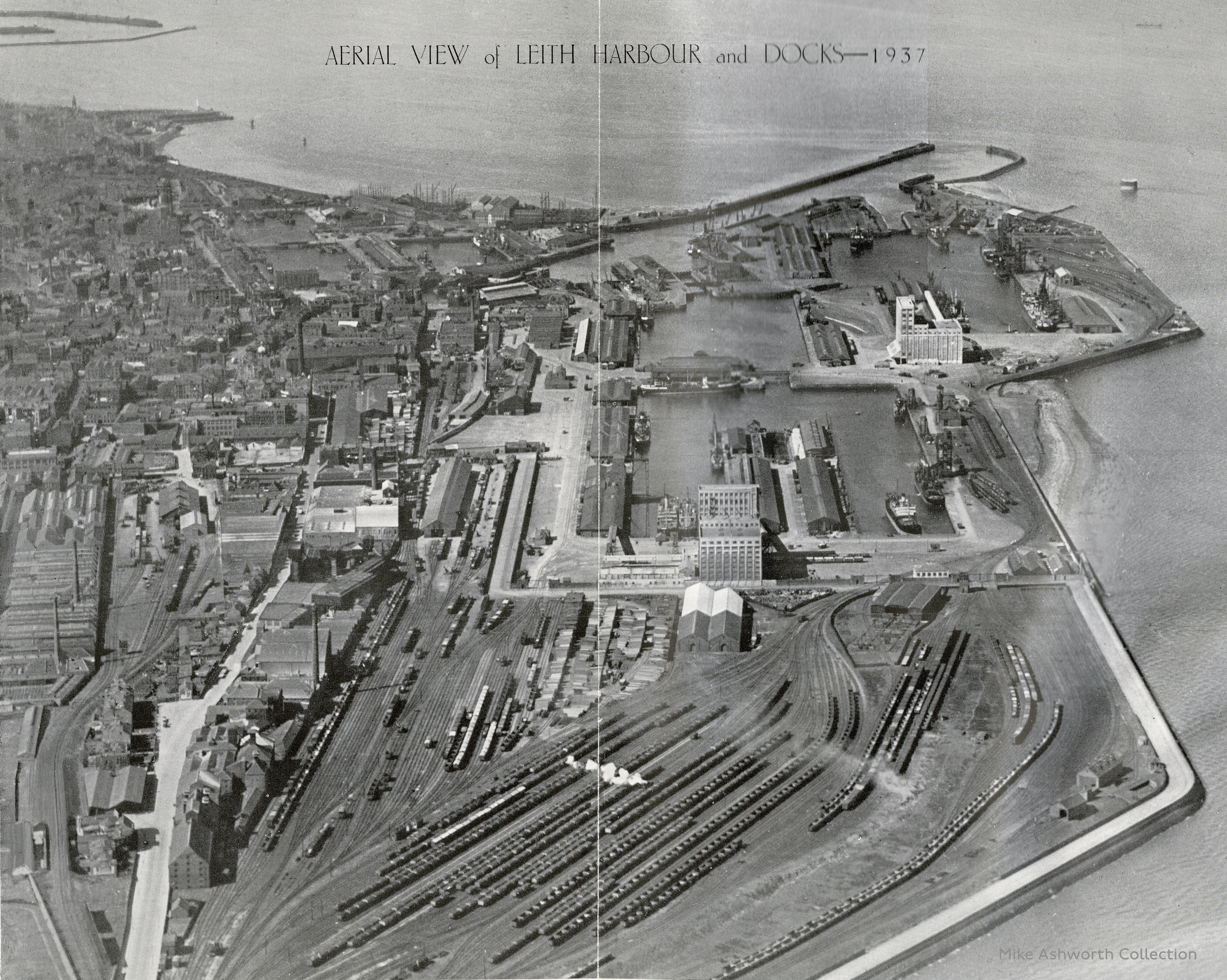 From the 1937 official handbook to the Port of Leith, issued by the Leith Chamber of Commerce, and giving a description of the then busy harbour and docks that served Edinburgh and the Lothians. The handbook gives details of the infrastructure, services and sailings from Leith as well as the fishing port at adjacent Newhaven. It also lists various statistics as to the volume, origin and destination of the various cargoes handled by the port.