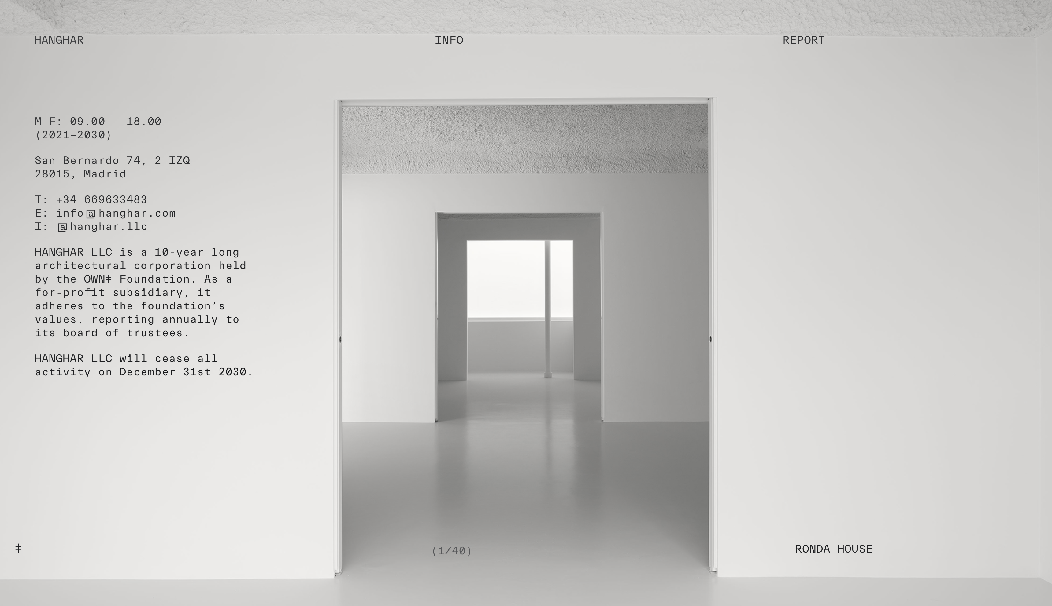 Hanghar portfolio website Contributed by WELTKERN® Typefaces on Feb 8th, 2022. Artwork published in 2020. Source: hanghar.com © HANGHAR LLC. License: All Rights Reserved. Canadian graphic designer Sam Wood used a combination of Everett Mono by Nolan Paparelli and BT Grotesk by Scott Vander Zee for the identity of Madrid-based architecture practice Hanghar LLC. Source: hanghar.com © HANGHAR LLC. License: All Rights Reserved. Source: hanghar.com © HANGHAR LLC. License: All Rights Reserved. Source: hanghar.com © HANGHAR LLC. License: All Rights Reserved. Source: hanghar.com © HANGHAR LLC. License: All Rights Reserved. Source: hanghar.com © HANGHAR LLC. License: All Rights Reserved. Source: hanghar.com © HANGHAR LLC. License: All Rights Reserved. Source: hanghar.com © HANGHAR LLC. License: All Rights Reserved. Source: hanghar.com © HANGHAR LLC. License: All Rights Reserved. Source: hanghar.com © HANGHAR LLC. License: All Rights Reserved. Typefaces More about TWK Everett MonoGet TWK Everett MonoMore about BT GroteskGet BT Grotesk Formats Web (5659) Topics Services (1563) Architecture (1427) Designers/Agencies Sam Wood (1) Tagged withparallax scrolling (28)monospaced (1256)typeface combinations (3979)single page websites (197)portfolios (777)websites (3599) Artwork location Spain (1057) Madrid (161) In Setsbb (Leonardo de la Fuente) (1331)Beautiful Typesetting (Lucas Bevilaqua) (684) Post a comment Name Email – will not be published Website Your response Submit Comment More TWK Everett Mono in use Free Therapy2020GRUND—Creative StudioContributed by GRUND Constants & Variables2019Philip JurschDoğu KayaContributed by Philip Jursch Es hät no packaging2020Romy StrasserLea Romana FischlinROLE StudioContributed by WELTKERN® Typefaces Sponsor More in Services L’ÉLOI2024PrincipalContributed by Store Norske Skriftkompani Etna redesign2025EY DobermanContributed by Store Norske Skriftkompani Kelly Sell branding2021Danielle AllingRitual MadeContributed by Danielle Alling Lavish Creative2024ARANContributed by Claudia Aran More in Web Broadgatec. 2018DNCOContributed by Swiss Typefaces Type Directors Club website (2025)2025KUDOS Design CollaboratoryContributed by Darden Studio Wellhub2024WellhubContributed by NaN Svizzera 240: House Tour2018Adrian SchneggMartin StoecklinContributed by WELTKERN® Typefaces Staff Pick More Fonts In Use National Arts Centre English Theatre Season 2024–20252024Amélie Lehouxno handsContributed by Amélie Lehoux Staff Pick Yoko Ono – Growing Freedom exhibition and catalogc. 2019PrincipalContributed by Swiss Typefaces Staff Pick CH’ARTSc. 2016Adrià MolinsContributed by Emtype Foundry Staff Pick Festival Dag in de Branding2016Studio Het MesContributed by Matthijs Sluiter Staff Pick