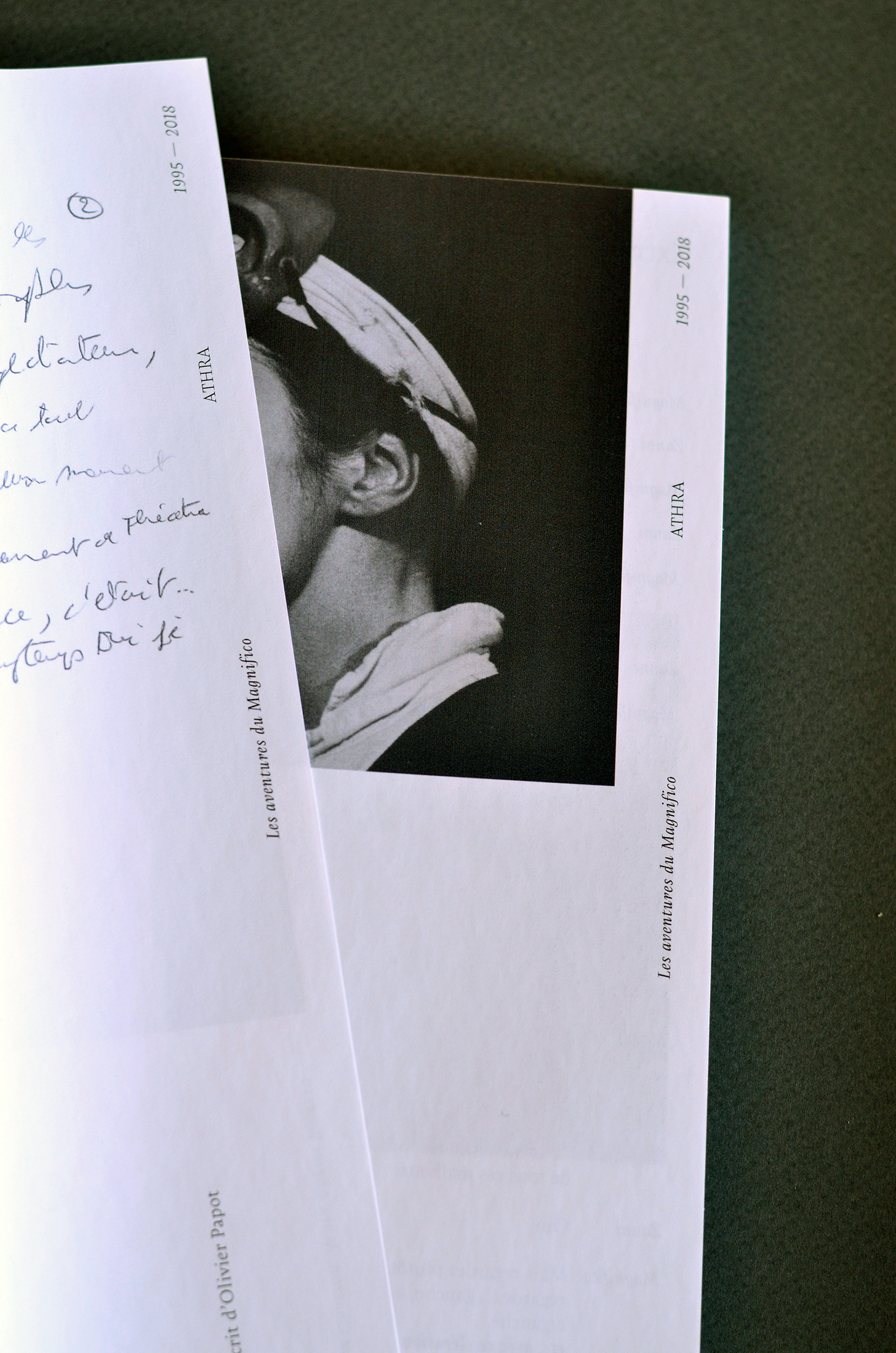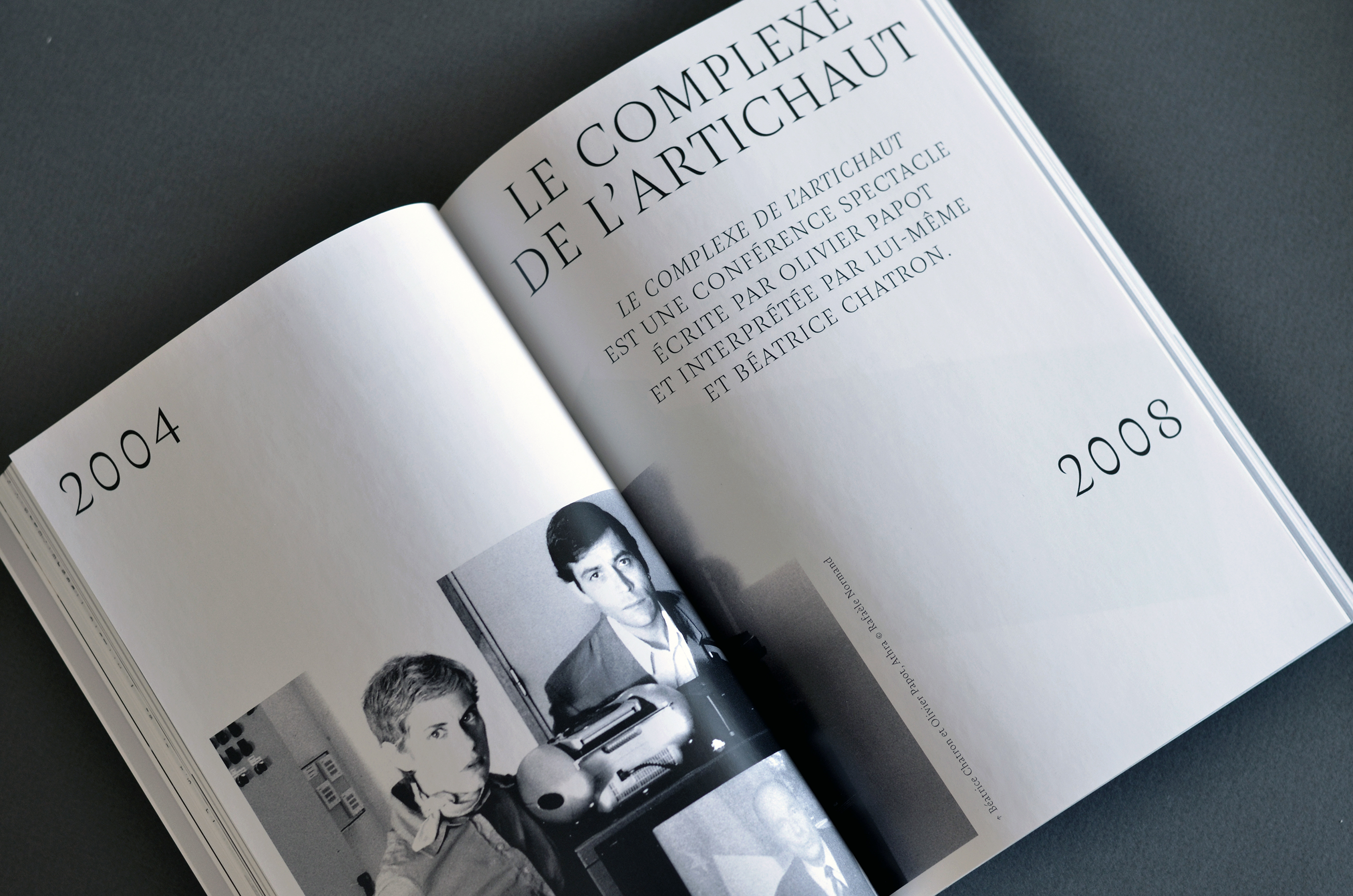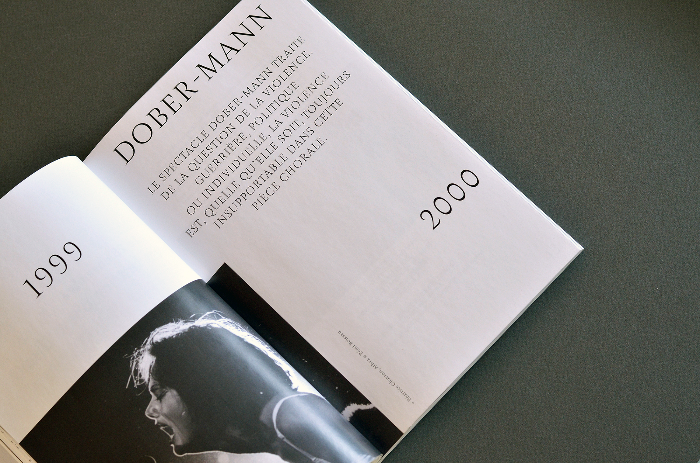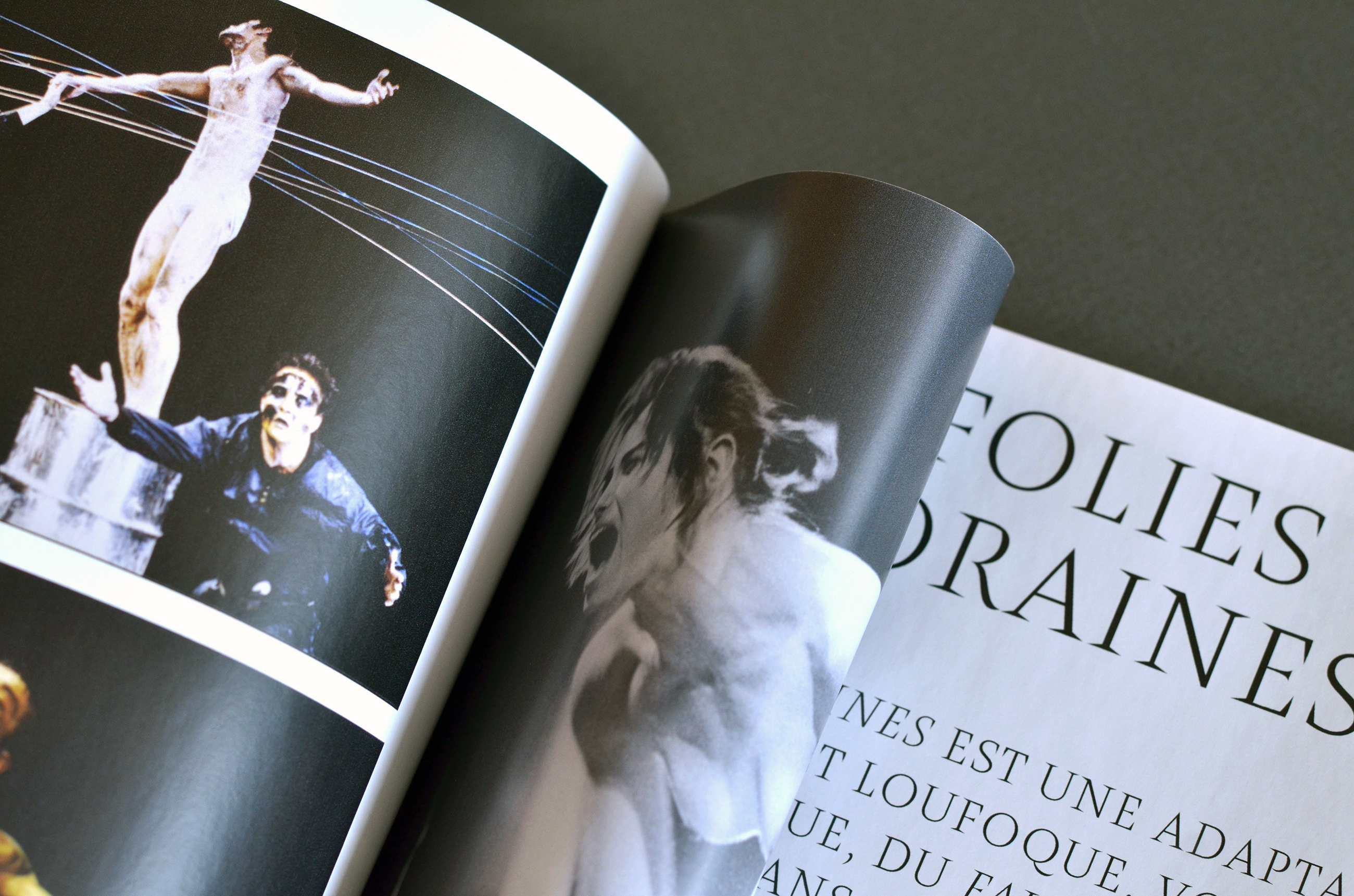 Between archive photographs, excerpts from original texts and press reviews, we designed a book that accurately retraces the entire Athra adventure. The Amster font allows to retranscribe the great expressiveness of the shows, a very rhythmic layout testifies to the energy that the company has deployed throughout its history. In the center of the book, a collection of texts offers a quiet time of reading.