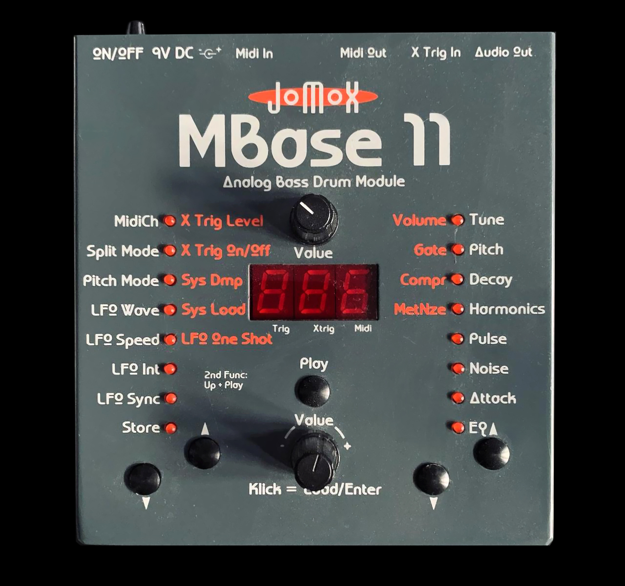 The Jomox Mbase 11 is an analog bass drum synthesizer, and a sequel to the MBase01. I used to have one of these machines, and always appreciated the unique typography. It’s not perfect and polished, but it offers so much to look at and explore.