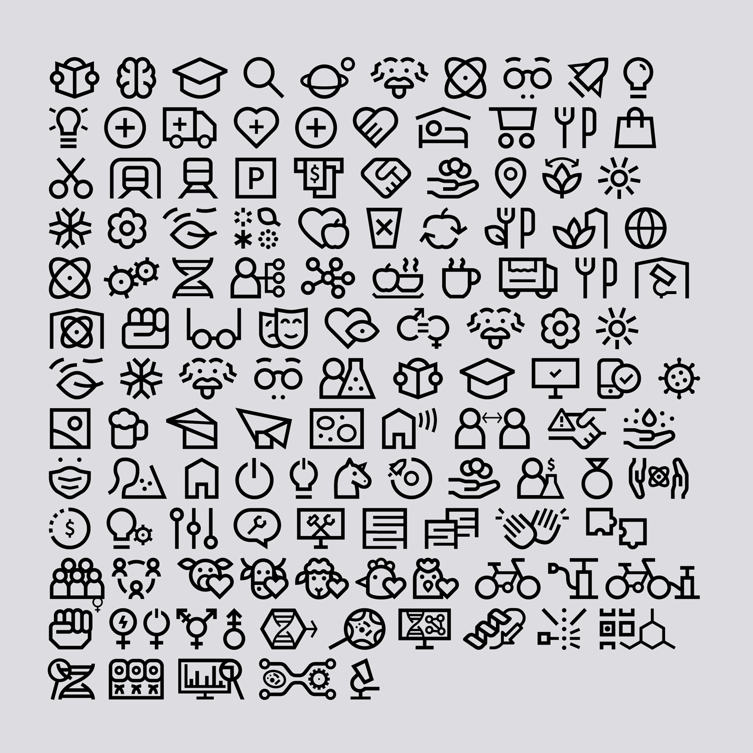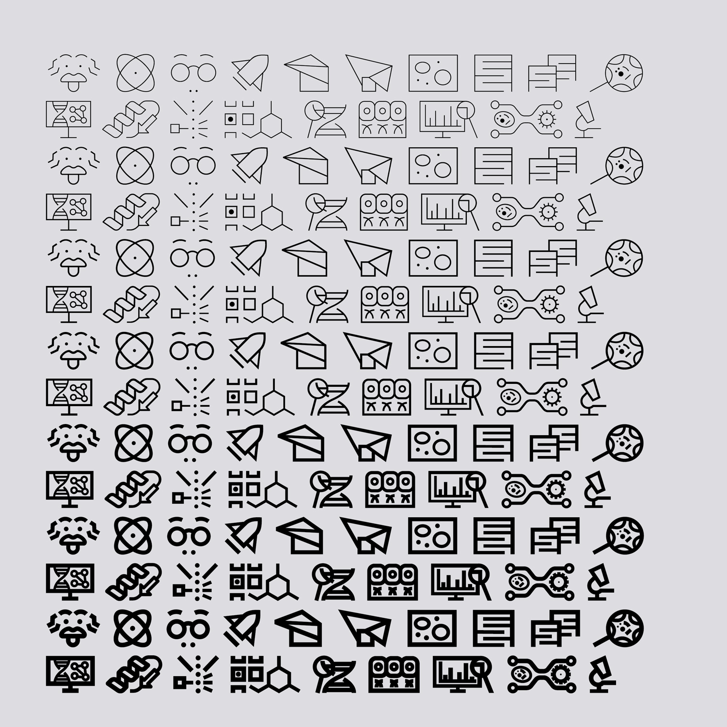 EPFL Mediacom, the department that developed the EFPL identity, asked Emphase to create over fifty personalized pictograms/icons. As needs arise, the collection of pictograms expands, allowing Diglû to keep evolving. There are pictograms that are very specific to EPFL, such as certain emblematic buildings or pictograms linked to specific fields of research, as well as more general icons linked to transportation or meals.