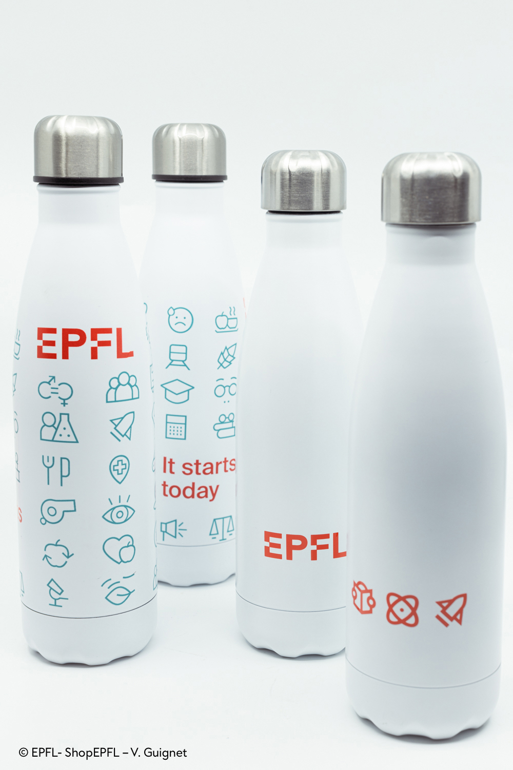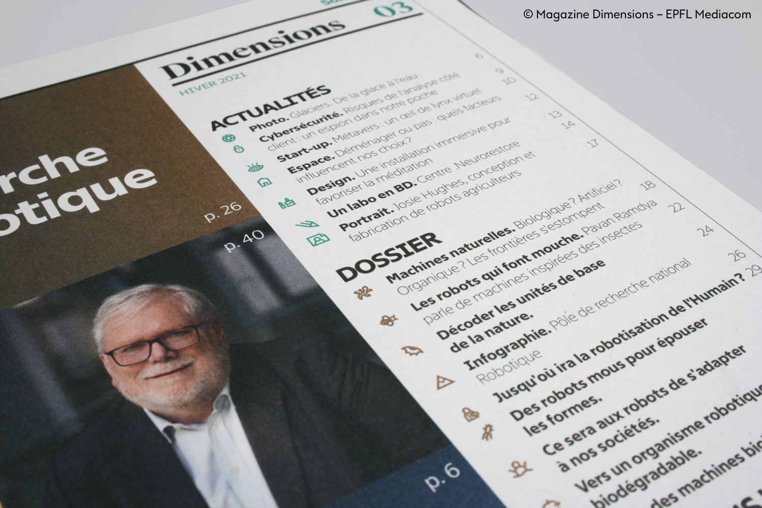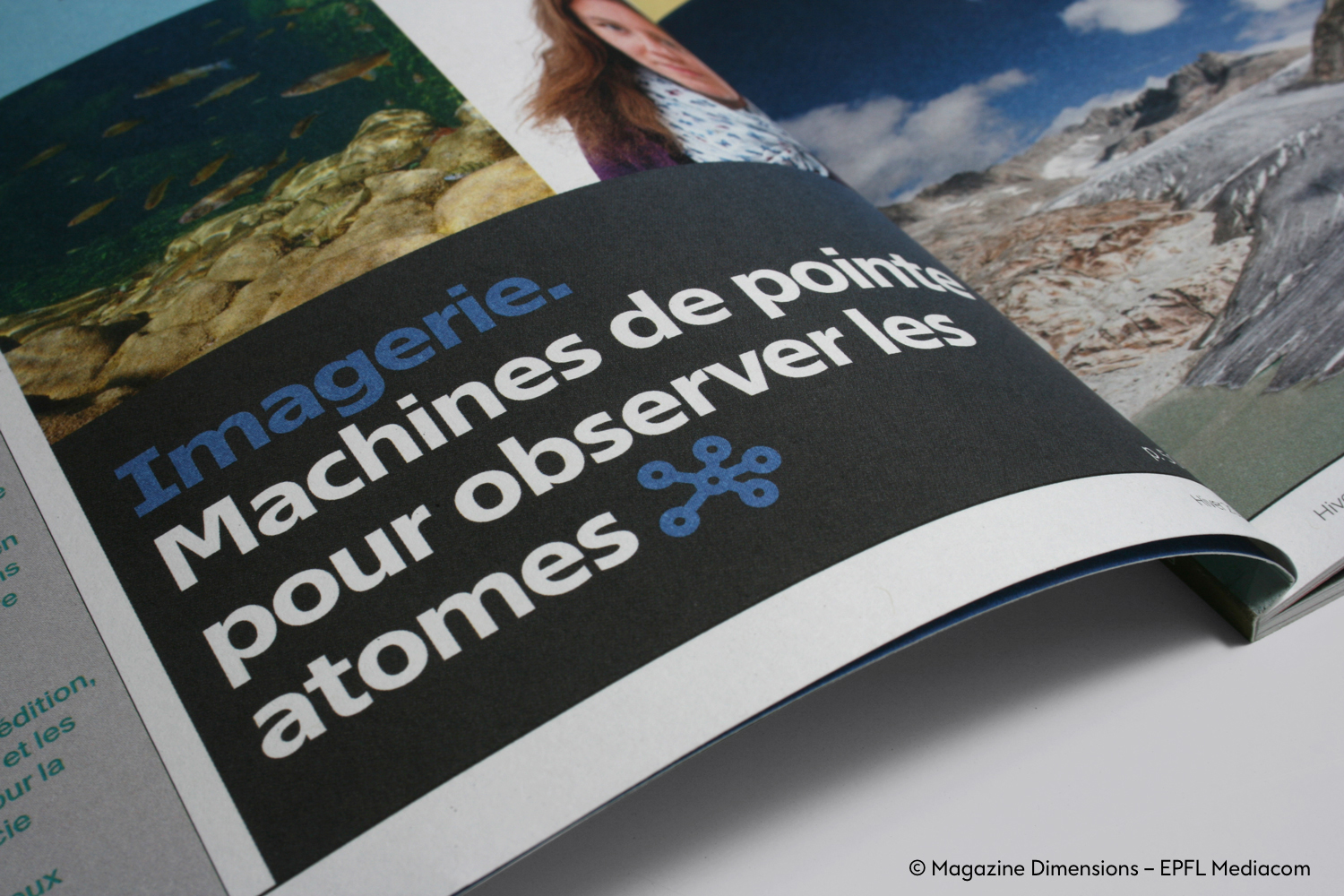 The Swiss Federal Institute of Technology in Lausanne (École polytechnique fédérale de Lausanne, EPFL) is a public research university specializing in natural sciences and engineering. For its visual identity, the EFPL uses Diglû, a typeface family by Emphase that includes numerous pictograms. Both typeface and icons are applied in a wide range of communication materials, including the Dimensions magazine as well as notebooks, bottles and other merchandise. Diglû and its icons are paired with three subfamilies from the Suisse collection by Swiss Typefaces: Suisse Int’l, Suisse Works and Suisse Screen.