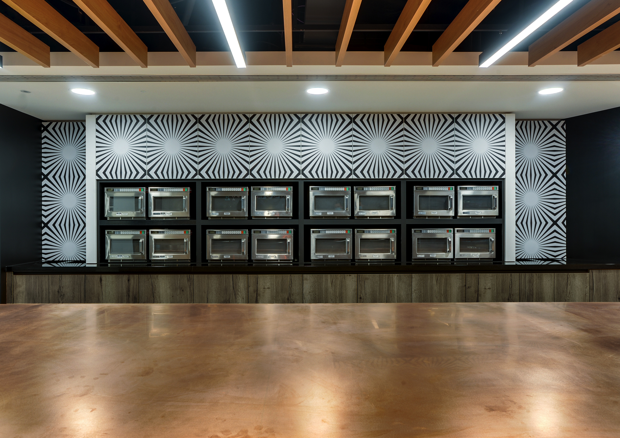 Pattern is derived from retro starburst and perforated contemporary pie tins. Copy is whimsical, inspired by the phrase ‘pie in the sky’. Collaborating with the interior architects and the restaurant operators, the identity is established across touch points such as signage, environmental graphics, experiential design, print and packaging, creating a playful dining workspace.