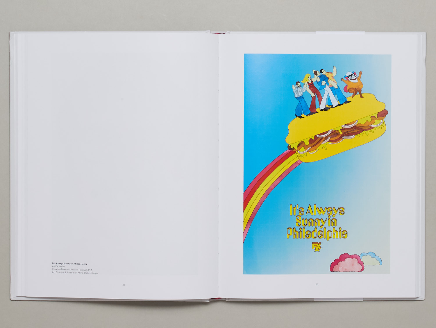 In this highly referential poster, Akiko Stehrenberger plays off the psychedelic 1960s artwork of the Beatles’ Yellow Submarine to create a poster featuring, well… a yellow Philly Cheesesteak and the cast of It’s Always Sunny in Philadelphia.