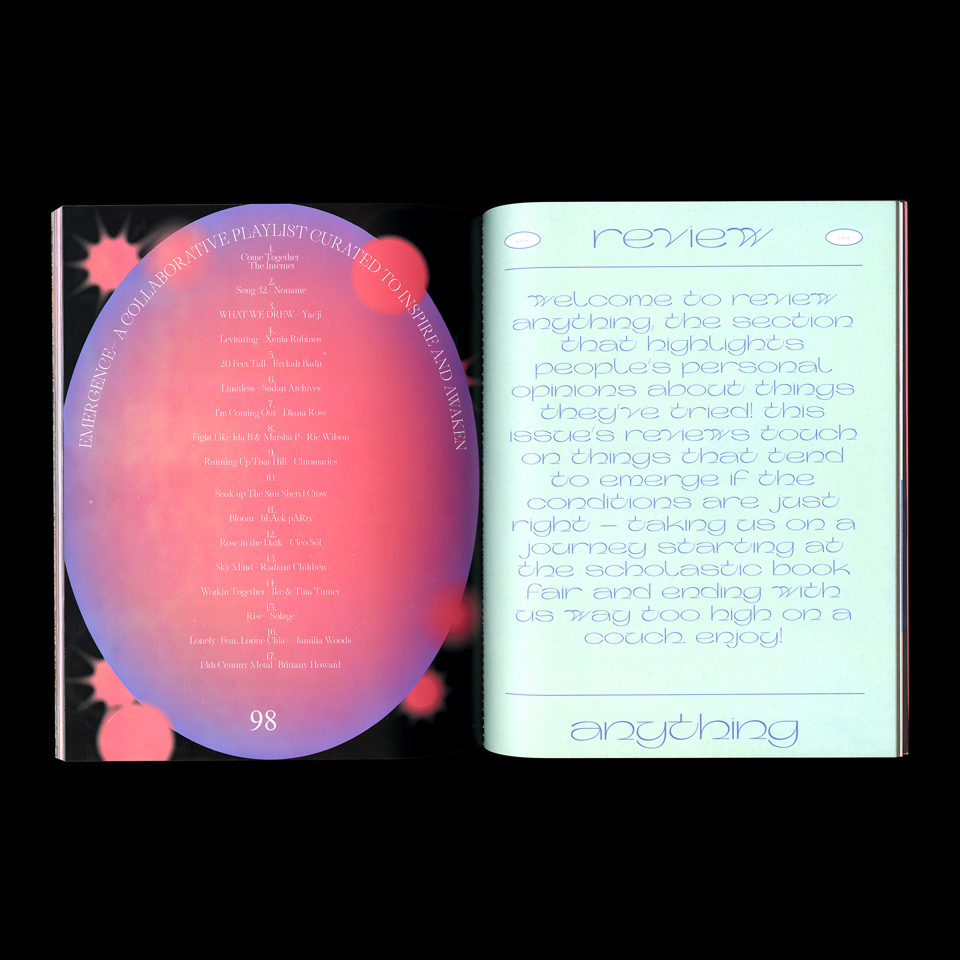 This is Salima magazine, Issue 01: “Emergence”. The creators employed the theme of emergence for their first issue, inspired by the writings of Adrienne Maree Brown and Octavia Butler.