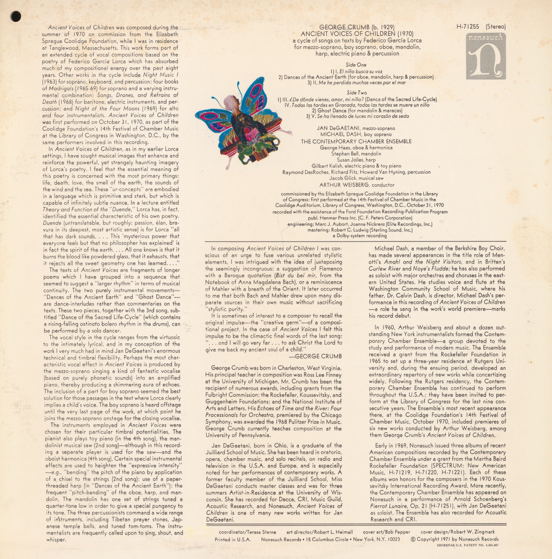 This is the first release of George Crumb’s Ancient Voices of Children –