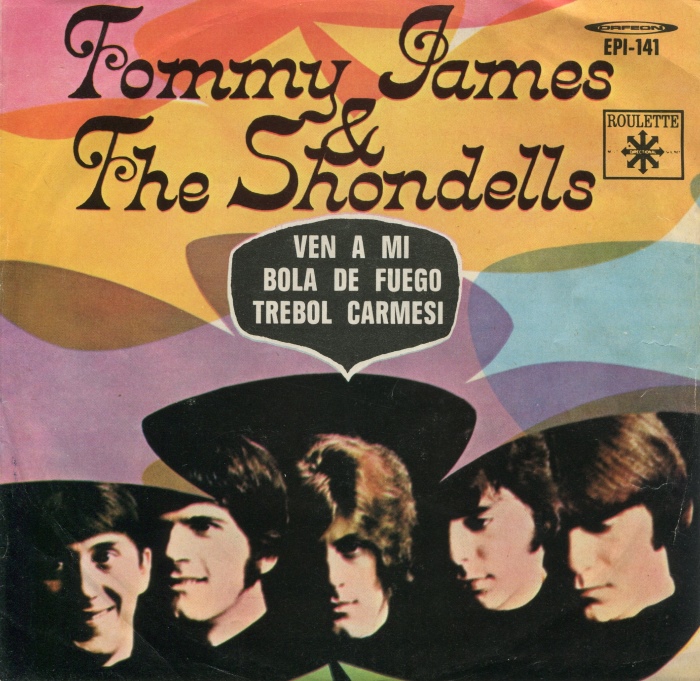 Cover for the sixth album by Tommy James and the Shondells, Crimson & Clover, released by Roulette Records in December 1968, and featuring the number one hit of the same title. While the red caps on the bleeding heart are lettering, the band name is set in Crayonette.