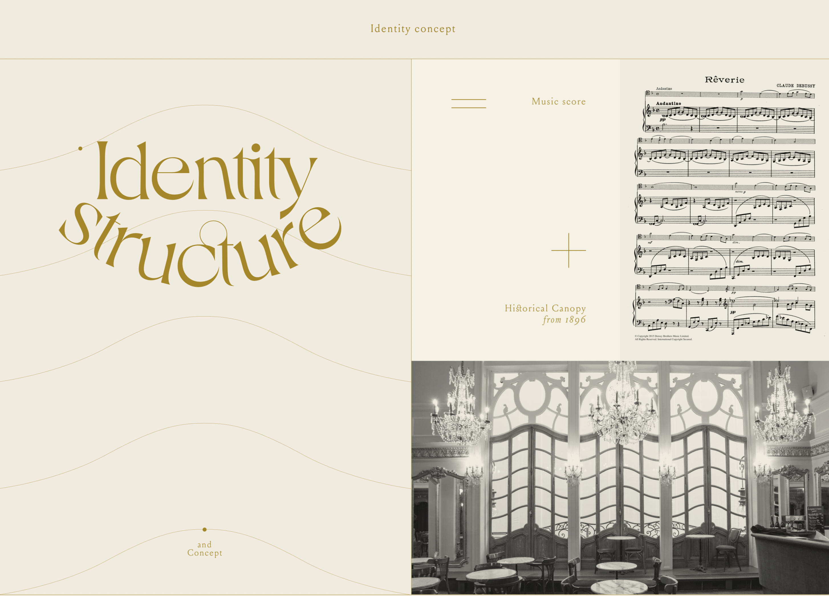 We took inspiration from the place and its Art Nouveau architecture. We used the wavelike great canopy window as a structure to compose the identity system, to obtain a simplified music score, we can find on posters, programs or flyers.