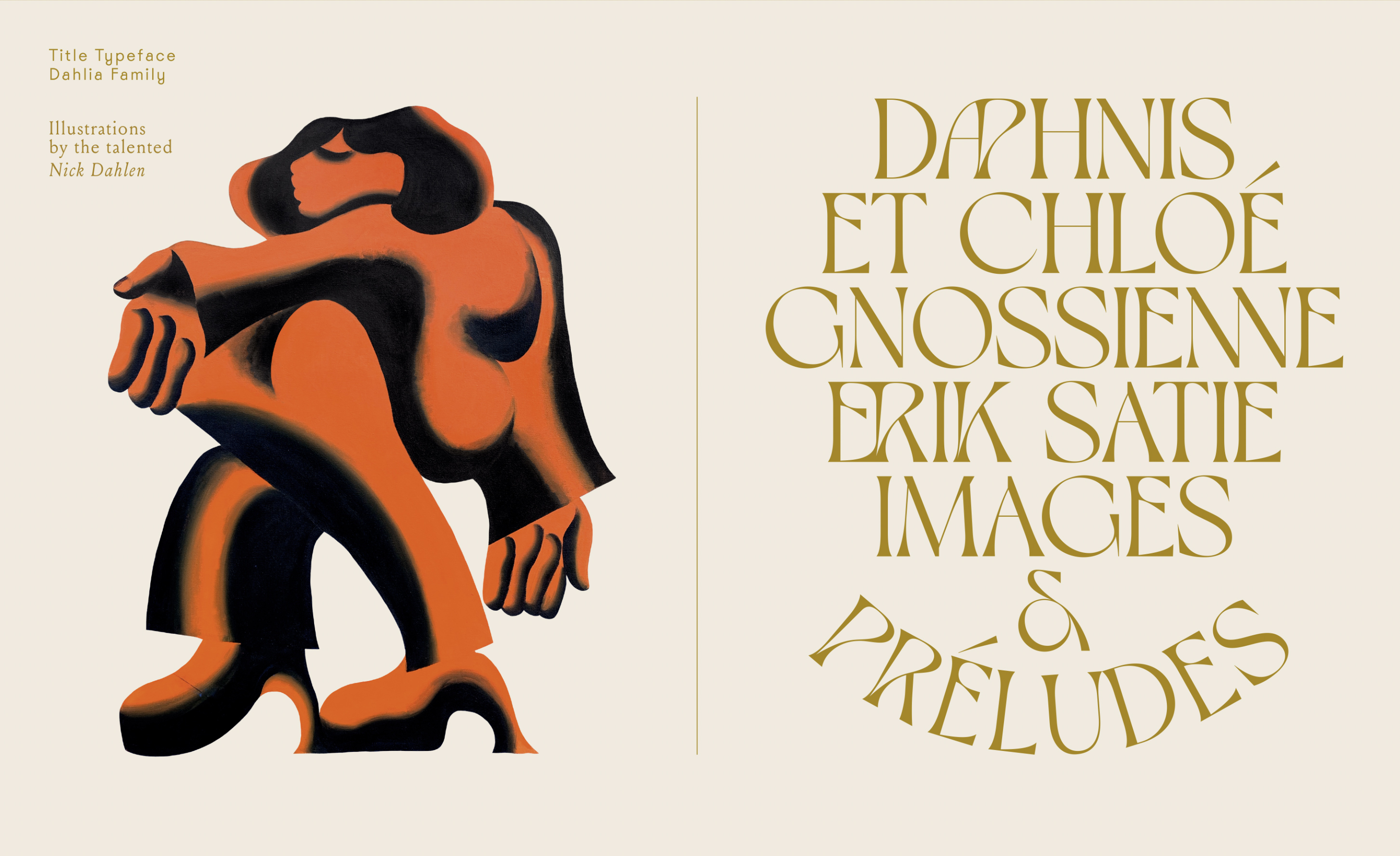 The logotype is set in customized Dahlia. Titles are set in Dahlia by VJ-Type. Secondary typeface is Louize text from 205TF. Illustrations by Nick Dahlen.