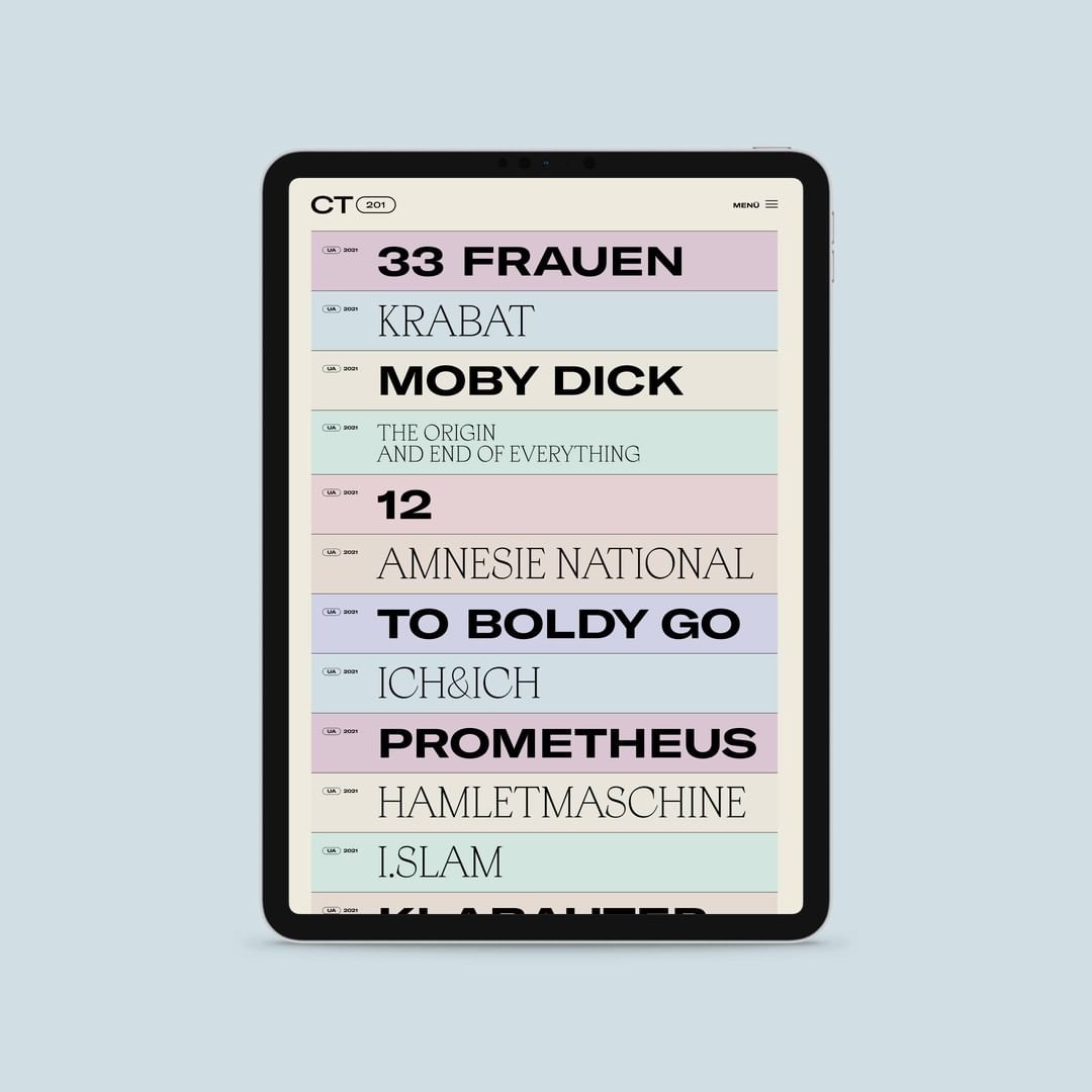 In 2021, the independant design studio from Düsseldorf Mintley created a whole new identity based on a pastel color palette and the combination of Apoc and GT America. Secondary information and body copy is composed in Gentium.