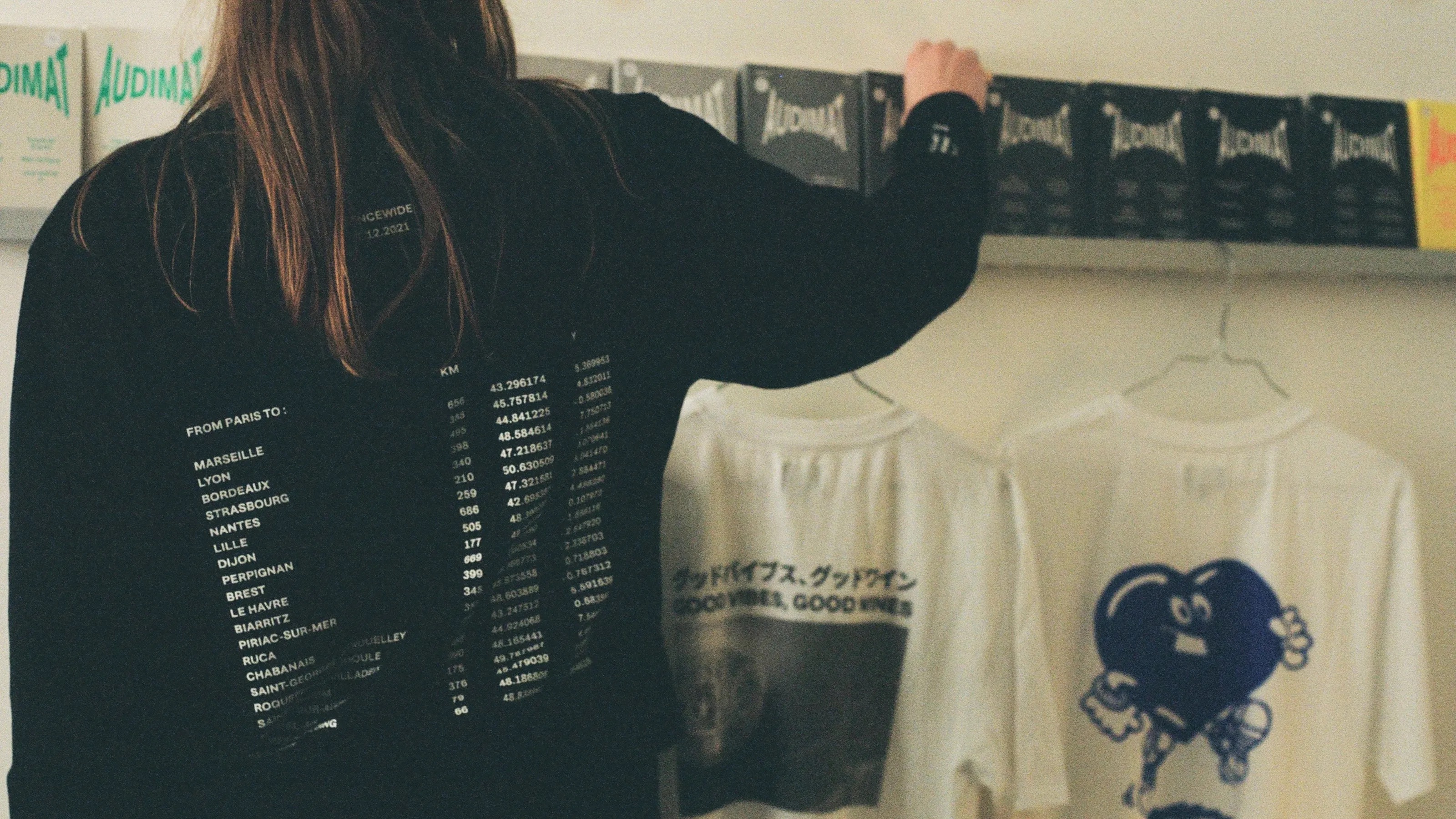 Edwin Europe have teamed up with the natural wine, rare vinyl and printed matter enthusiasts of Fro. Paris Est to celebrate the first anniversary of for a limited edition run of T-Shirts, with custom graphics by Diplomatie Studio. The typography pairs Karlsbader Groteskwith Japanese characters set in a yet unidentified typeface [edit: It’s Source Han Sans, see comments].