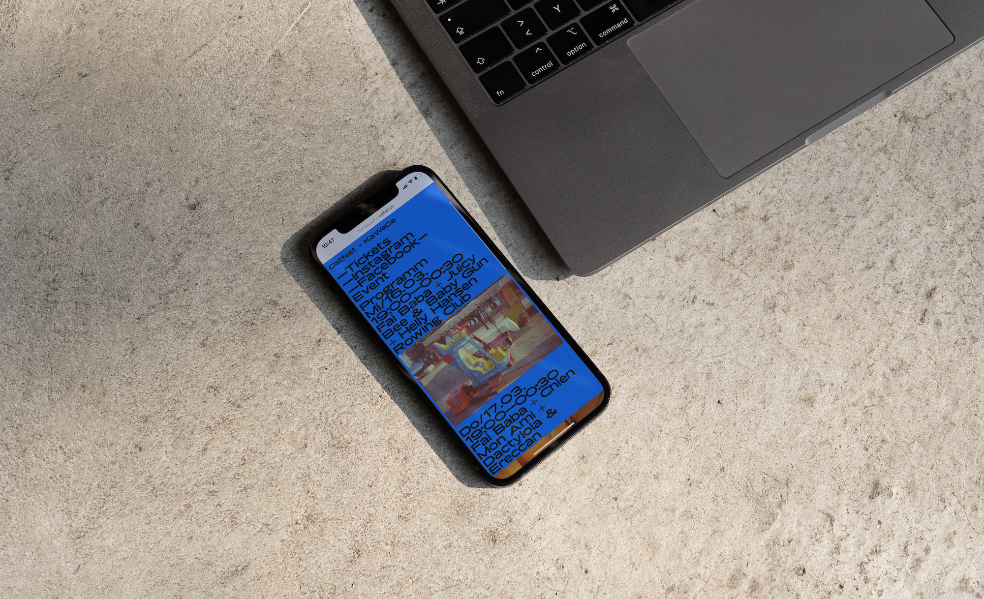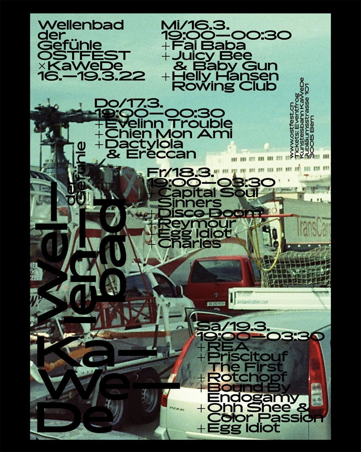 Posters and website for Ostfest, a contemporary music festival that takes place at Ka-We-De in Bern, Switzerland. From the Facebook page (translated):