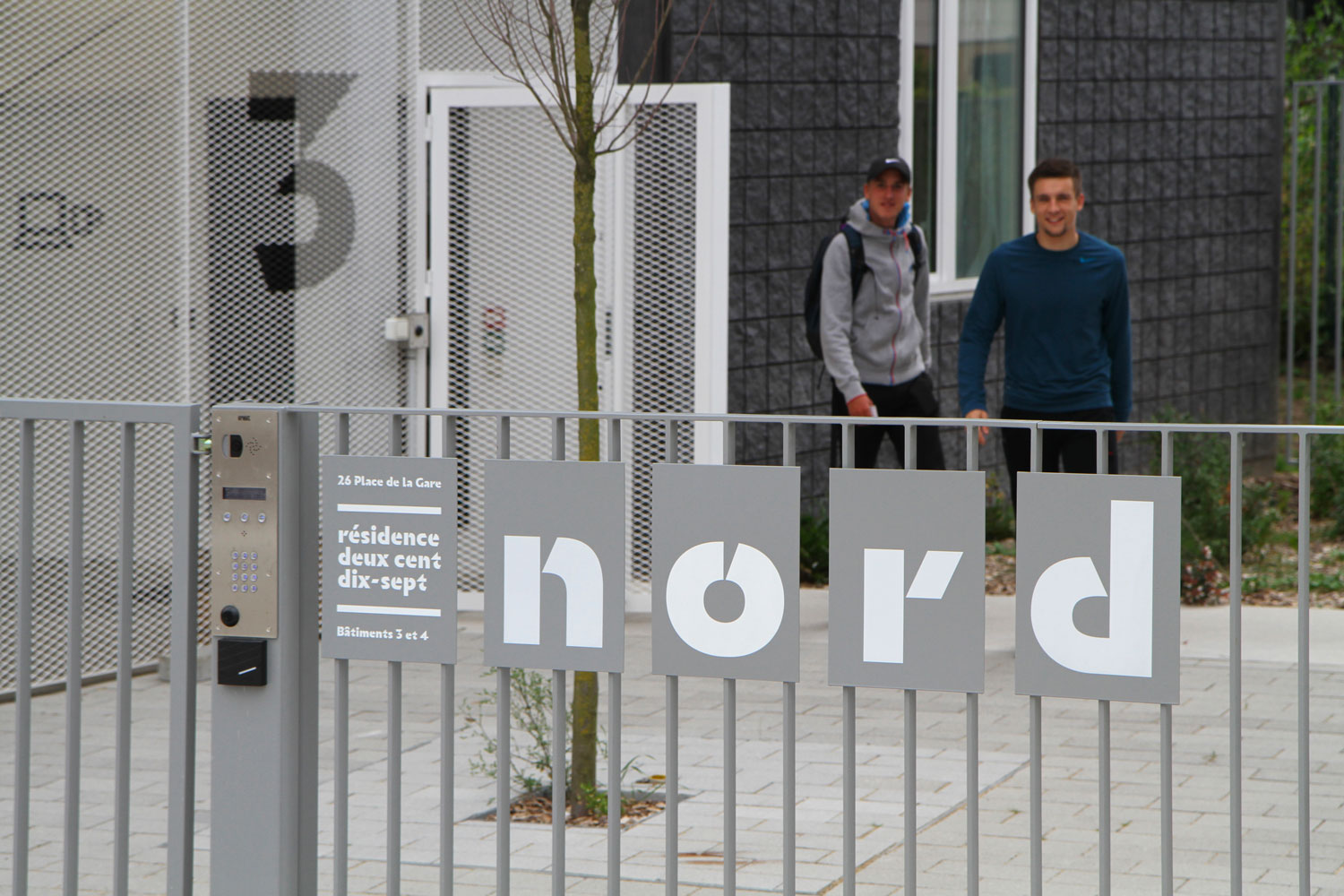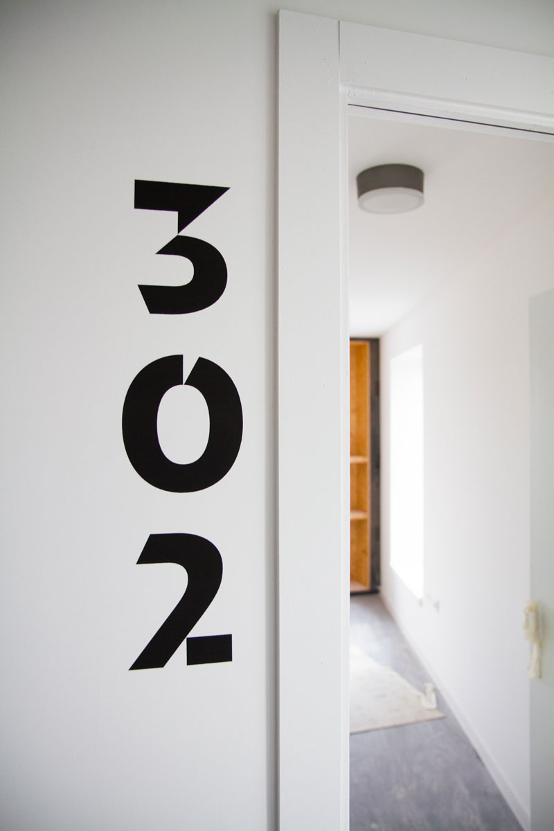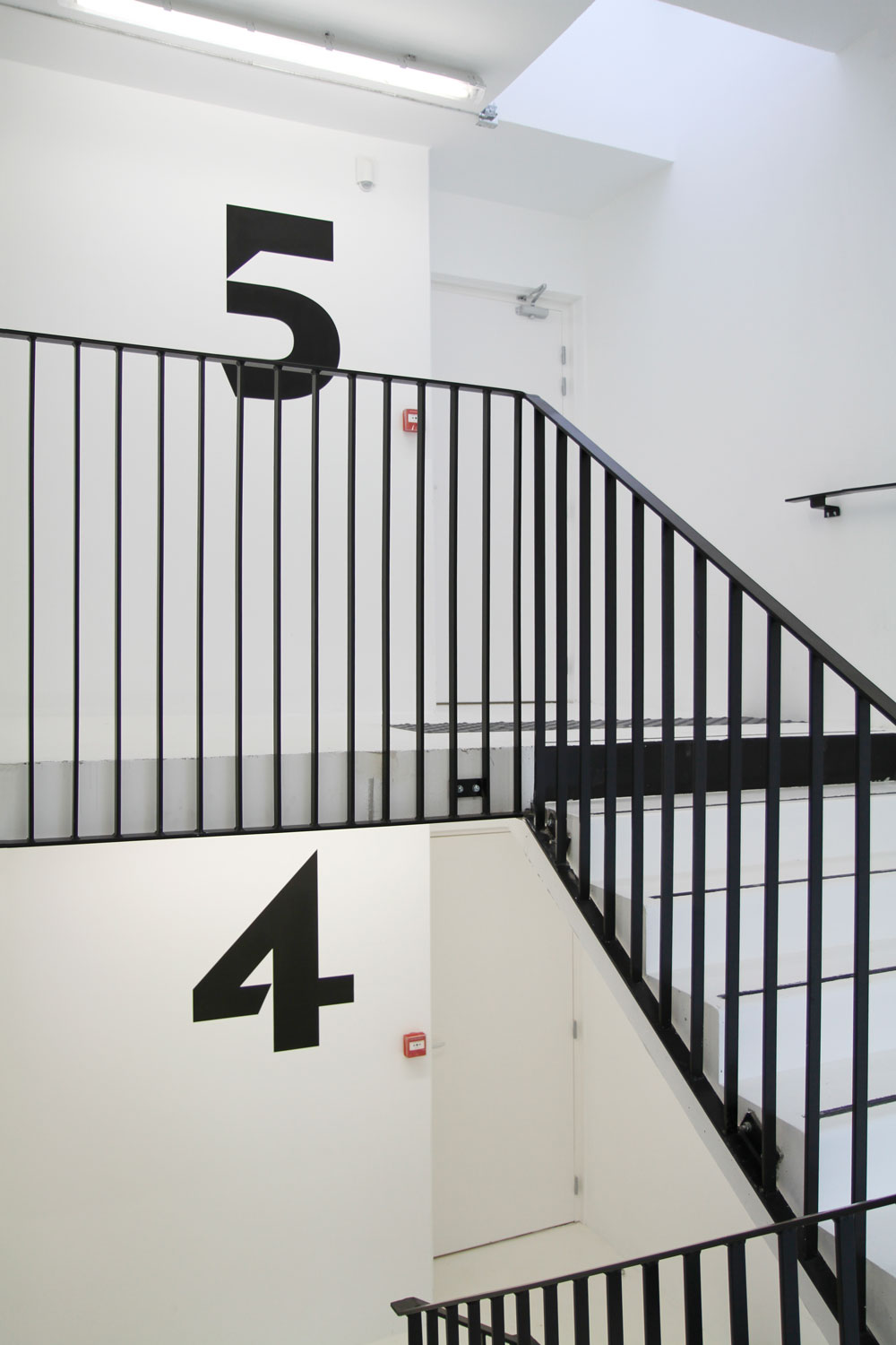 Orientation is a stencil typeface originally commissioned by Paris-based designer Thanh Phong Lê (Travaux-Pratiques) with the simple brief of creating a geometric typeface that could be fabricated as stencils for the wayfinding system of Résidence 217, a new student-housing building in Roubaix, France. Shown here is this original application of the initial weight.
