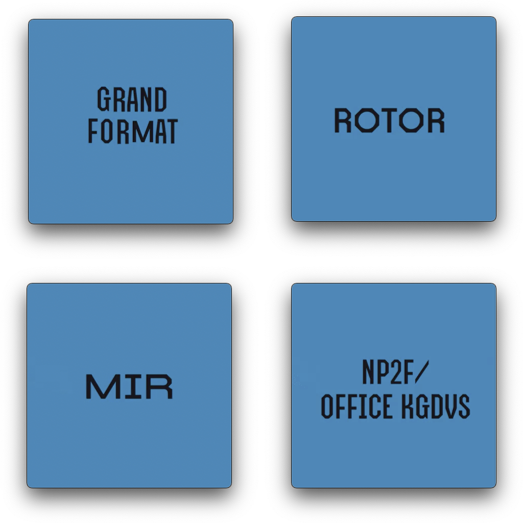 Kreuz is a typeface of industrial roots, with letterforms that combine angular and smooth outlines, evoking nuts and bolts. Here it is paired with a font that’s even more technical, and comes straight out of AutoCAD software: it’s the monolinear Proxy by Autodesk.