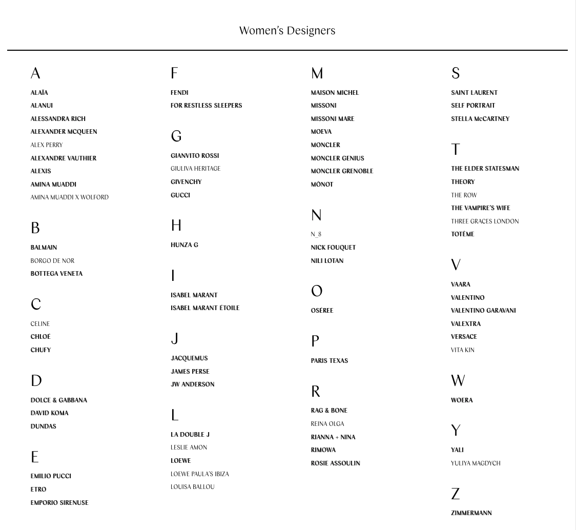 Columbia Sans is used for all visual aspects of the brand, including the website shown here. There, Jean-Baptiste Levée’s typeface design is utilized in Light and Semibold weights, from banners on the homepage to the shop navigation including button labels, and even for the body copy in their journal called The Feed. With its classical shapes that combine a high stroke contrast with no-frills terminals, Columbia Sans is a self-evident choice for the context of luxury fashion. At the same time, its oblique contrast axis adds a welcome dynamic element, yielding a look that is both distinguished and sanguine.