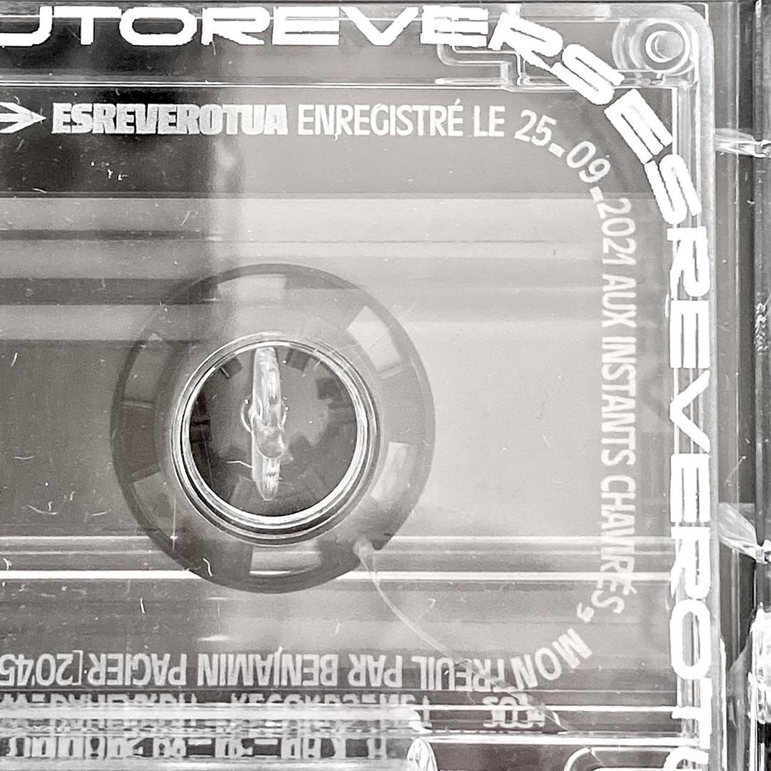 Autoreverse is a project by Nina Garcia (electric guitar) and Arnaud Rivière (electronics). The first release by the experimental/noise duo is titled Esreverotua. Yes, that’s Autoreverse, reversed. Esreverotua features two live recordings of 20 minutes each, and is freely available for download from Da! Heard It Records (donations are welcome). The record also comes in the form of a compact cassette, in a limited edition of 111 copies.