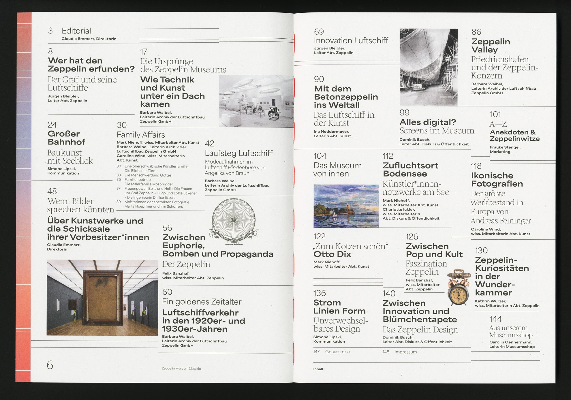 Area Inktrap and Romie are paired for the conception of the Zeppelin Museum’s magazine. The institution, based in Friedrichshafen, brings to life innovations in technology and art. It inspires people to dare the seemingly impossible and actively shape the future as pioneers of art, crafts or industry.