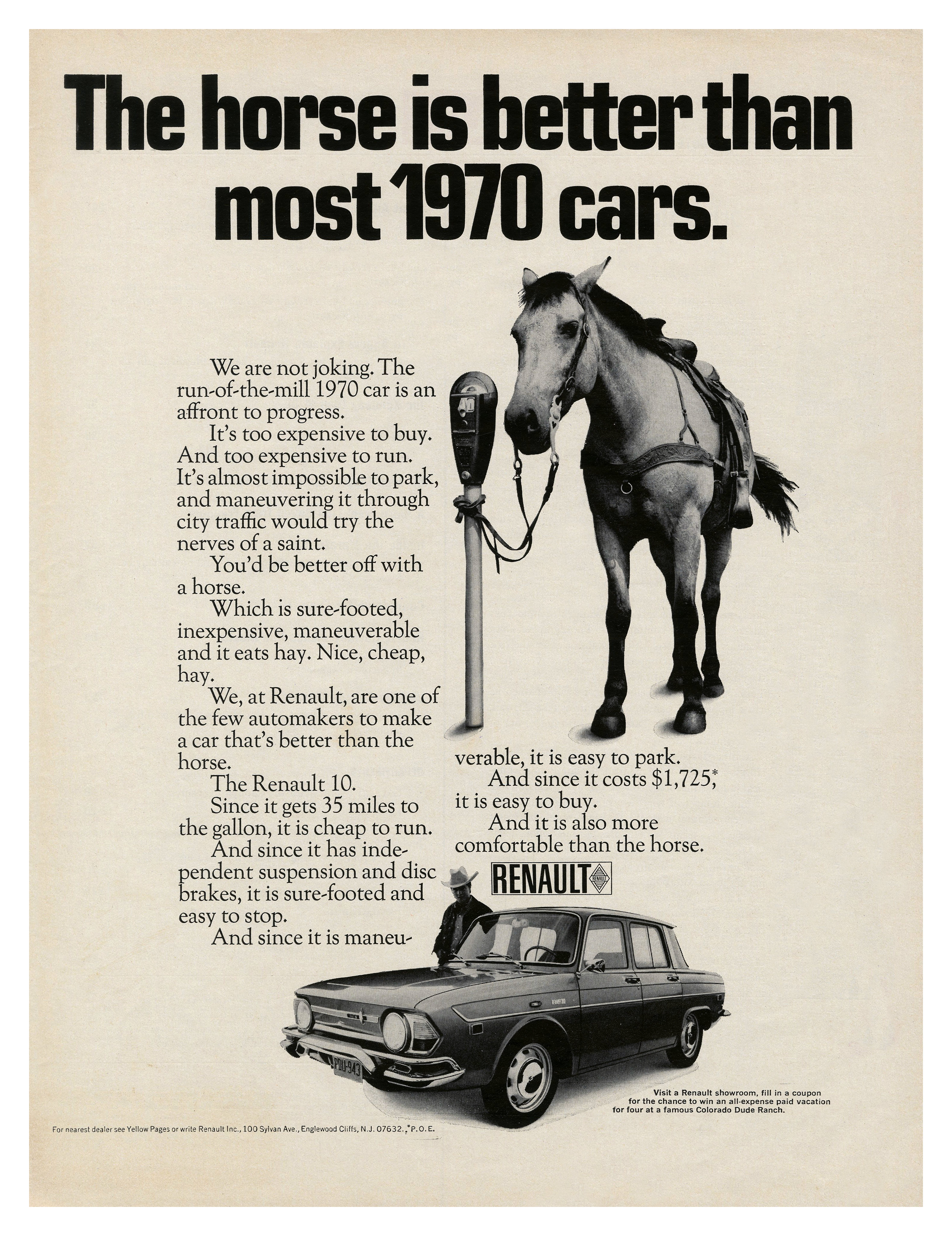 3 Comments on ““The horse is better than most 1970 cars” Renault ad”