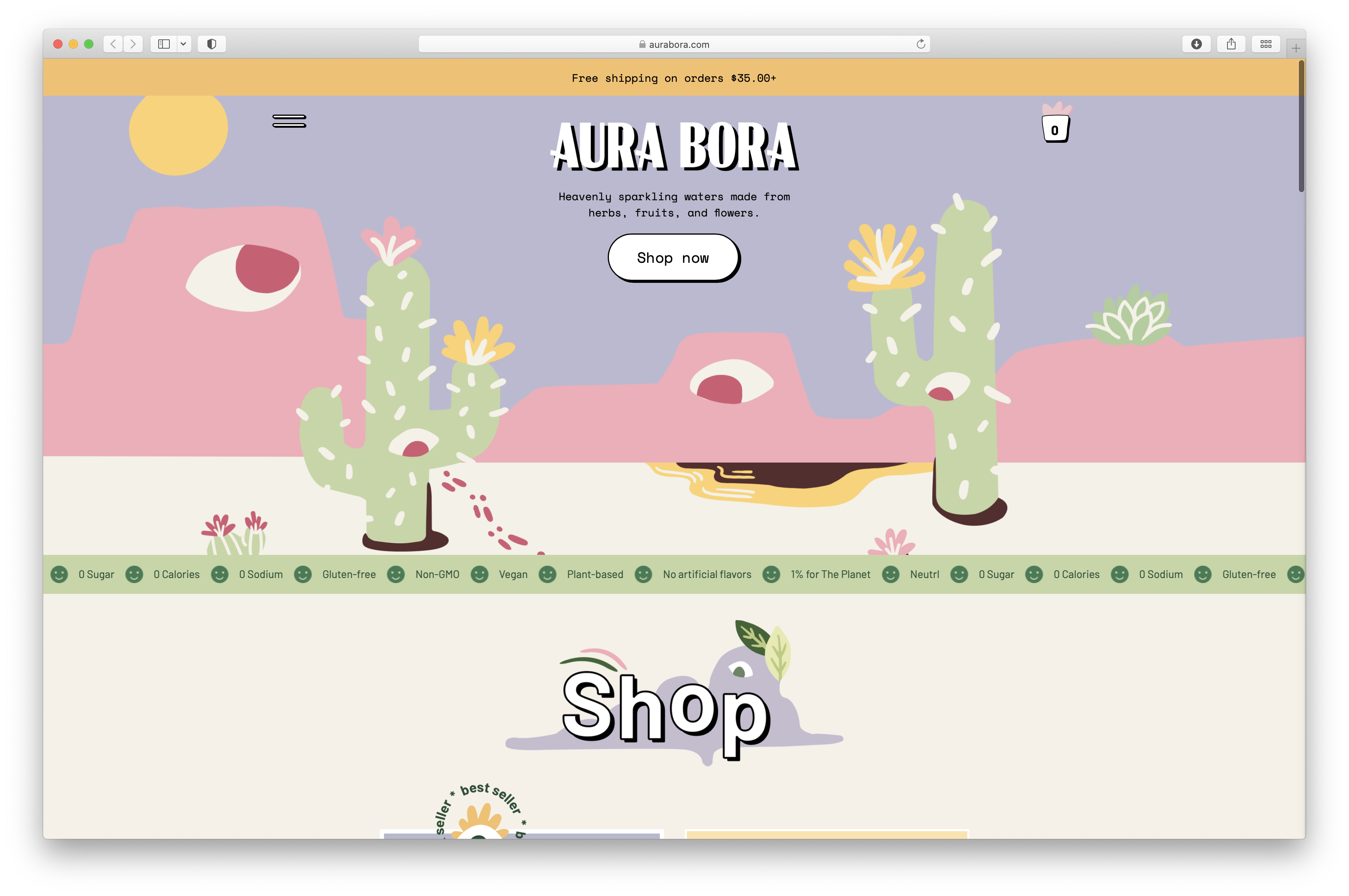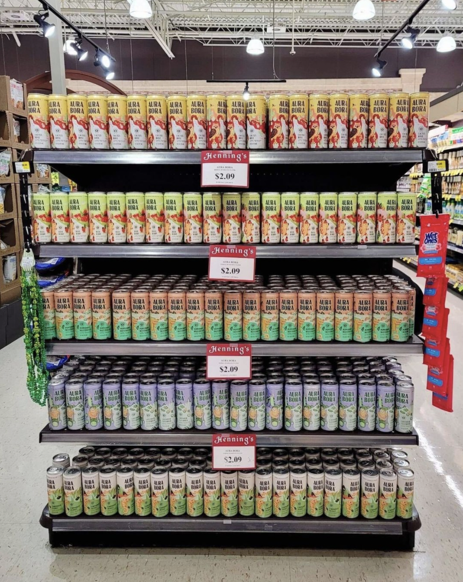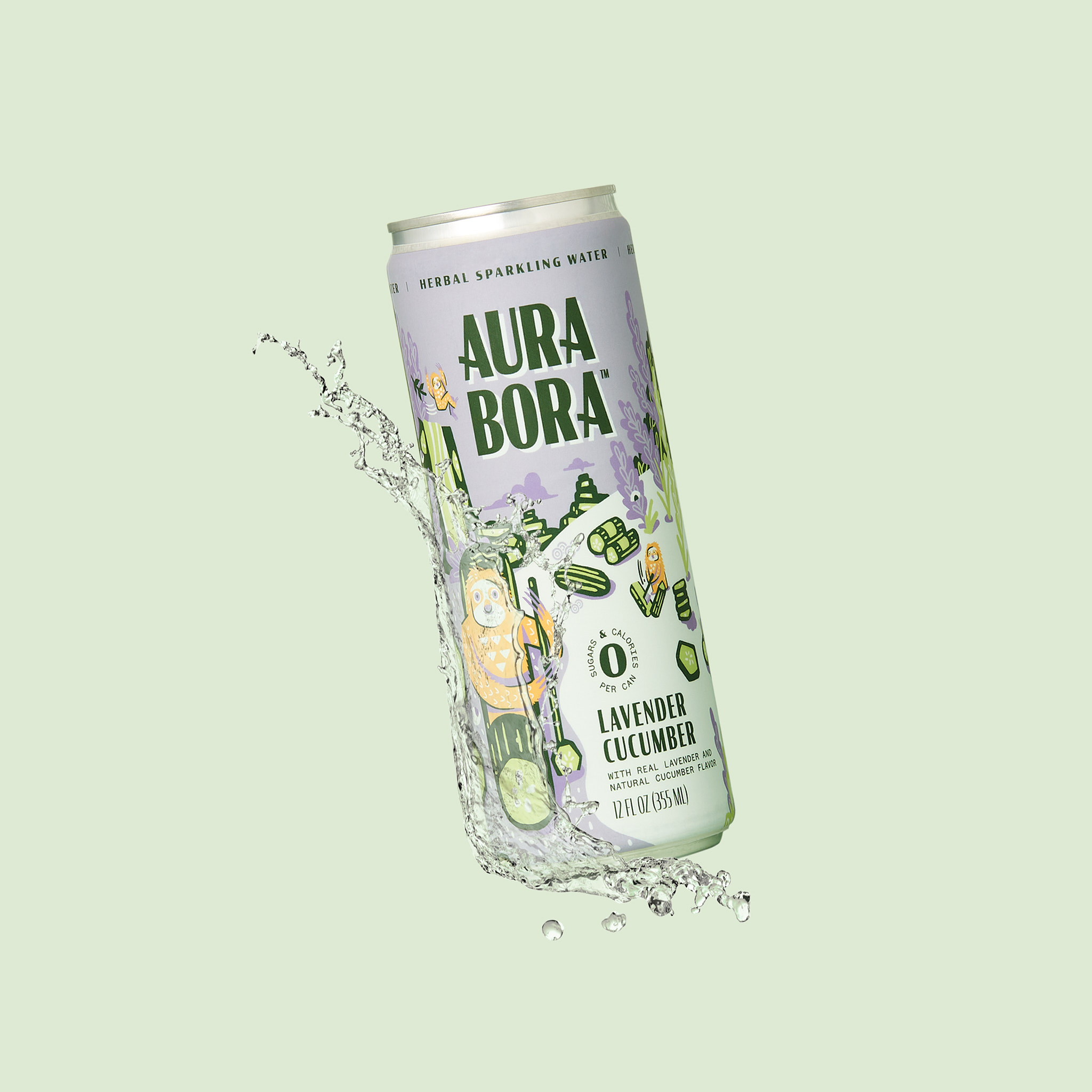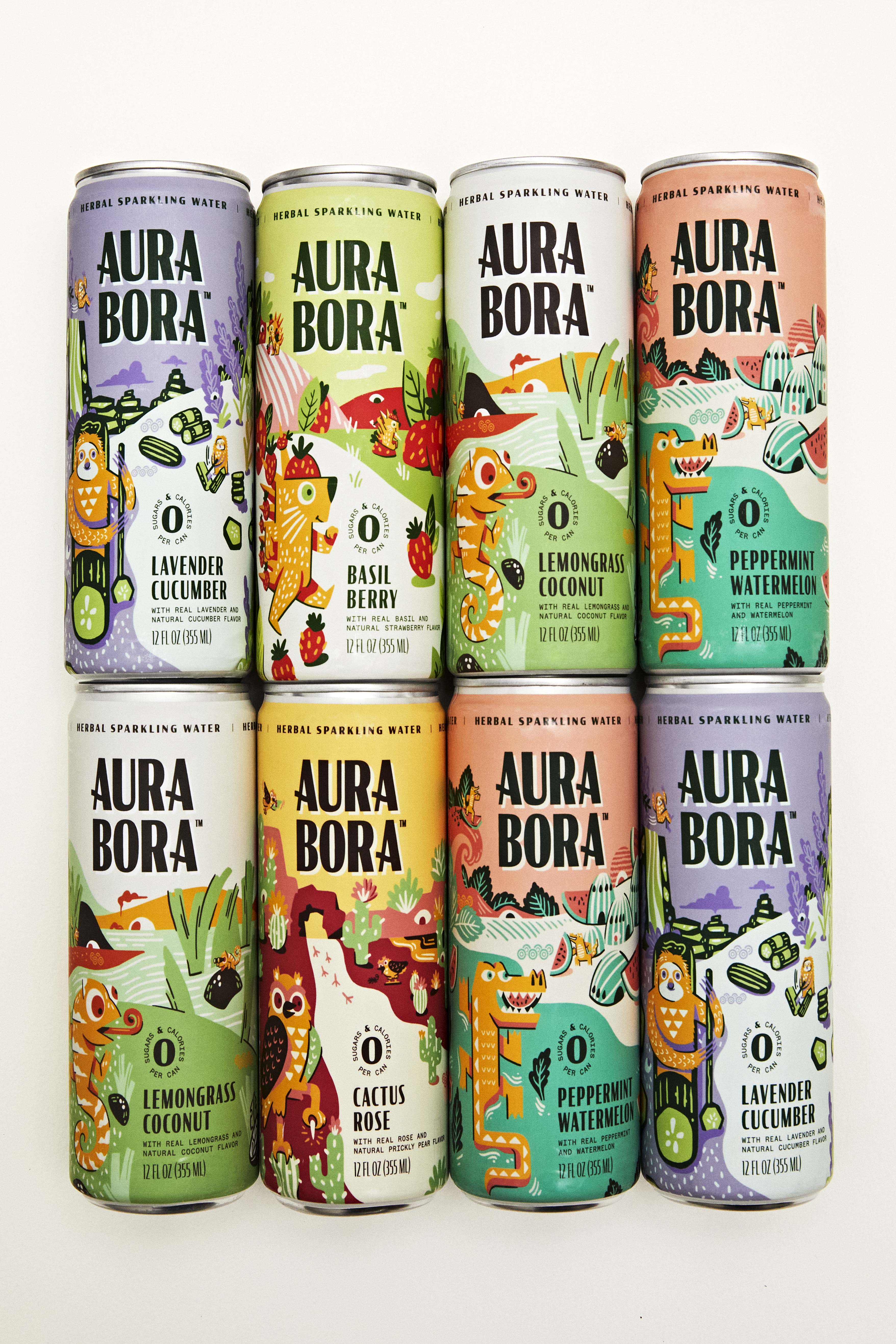 Aura Bora is a producer of uniquely flavored sparkling waters made from herbs, fruits, and flowers. Founded by Paul and Maddie Voge, Aura Bora’s beverages can be found at more than 3,000 retailers across the United States. They worked with branding agency Moxie Sozo to develop their playful brand and the designs of their cans.