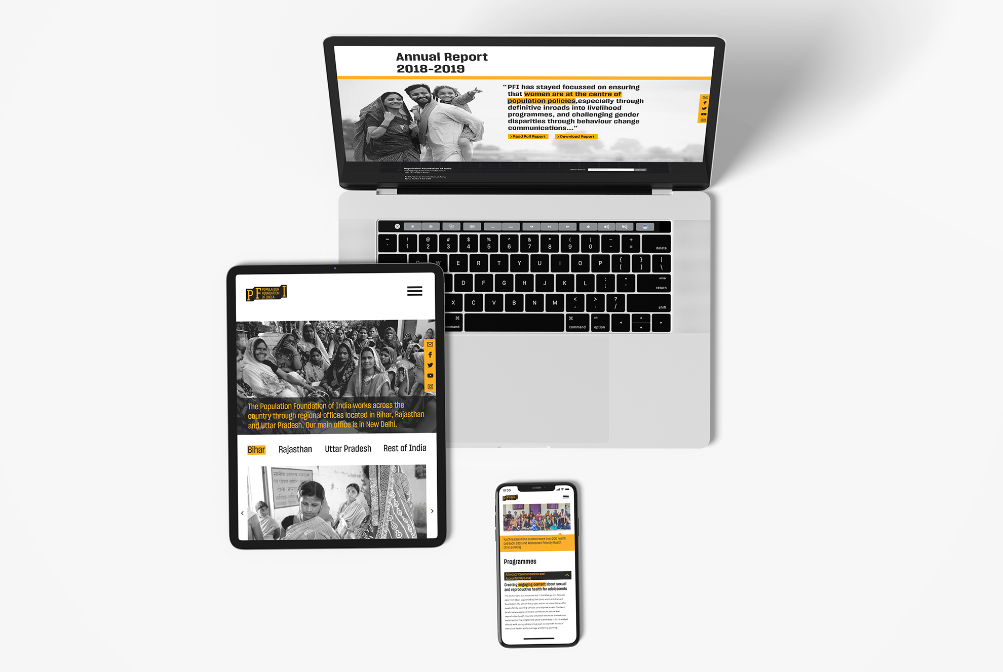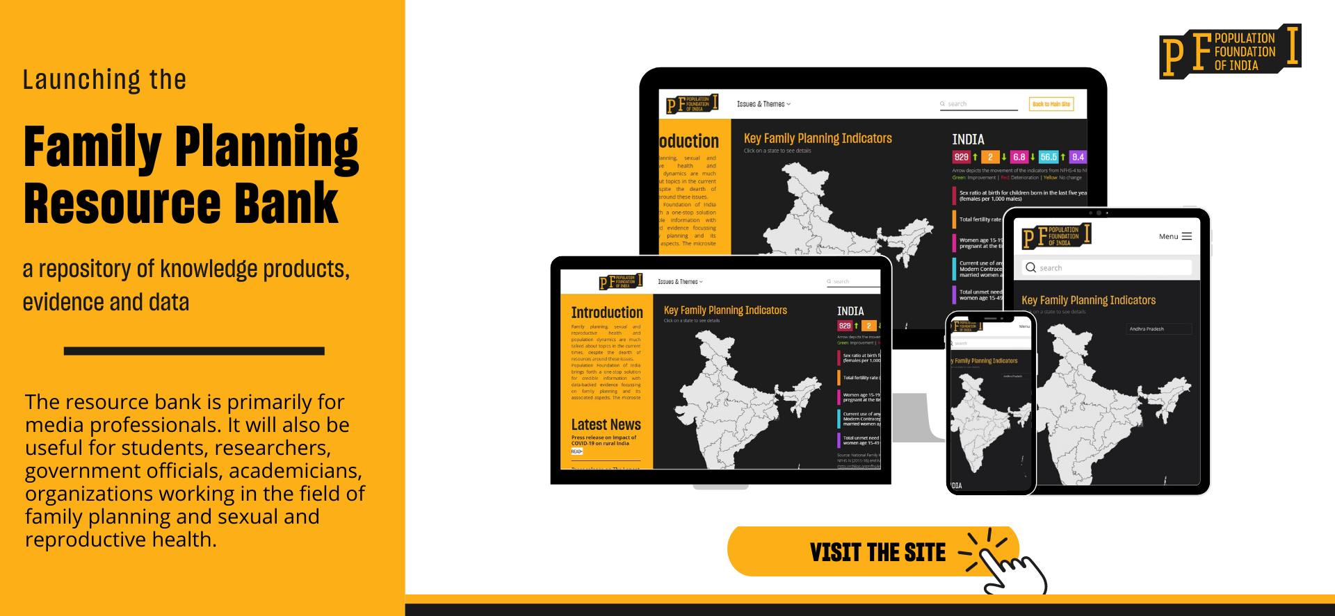 Population Foundation of India is a national NGO with four branches in Northern India, which promotes and advocates for the effective formulation and implementation of gender sensitive population, health and development strategies and policies. The organization was founded in 1970 by a group of socially committed industrialists under the leadership of the late JRD Tata and Dr Bharat Ram. Population Foundation of India is guided by an eminent governing board and advisory council comprising of distinguished persons from civil society, the government and the private sector.