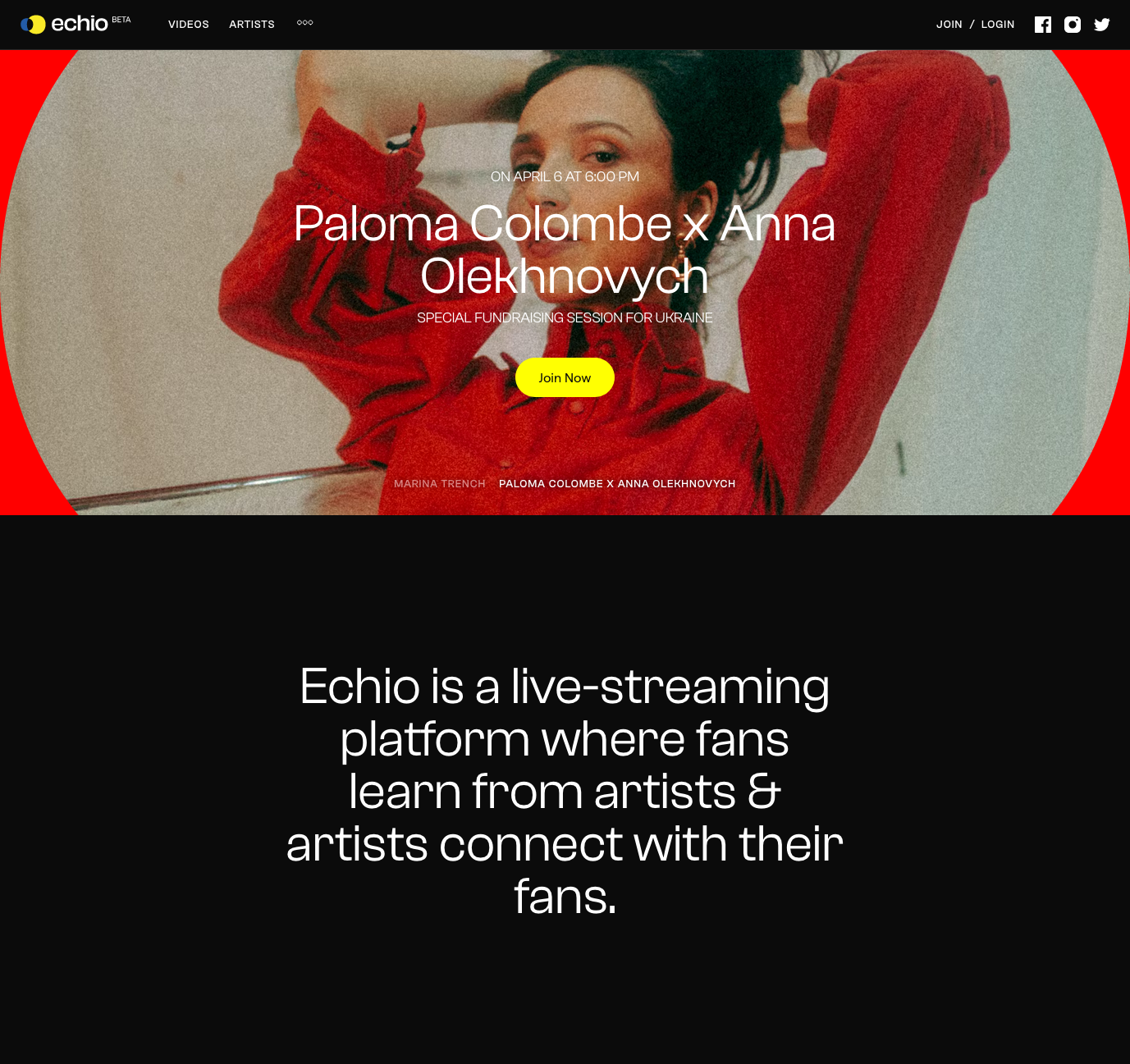 Brand identity and website for Echio, a live-streaming platform where fans learn from artists, and artists connect with their fans.