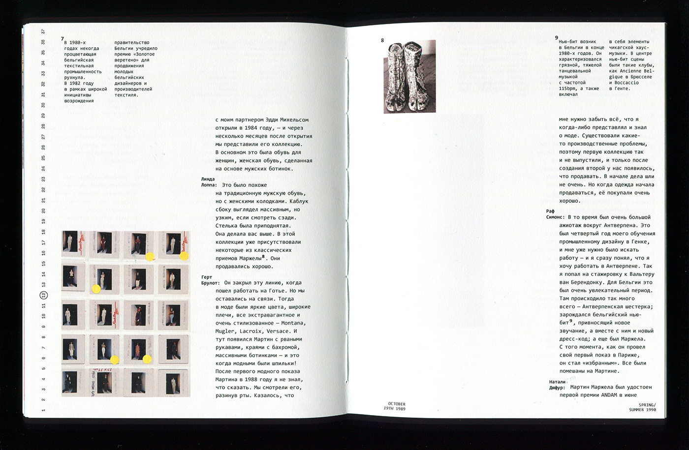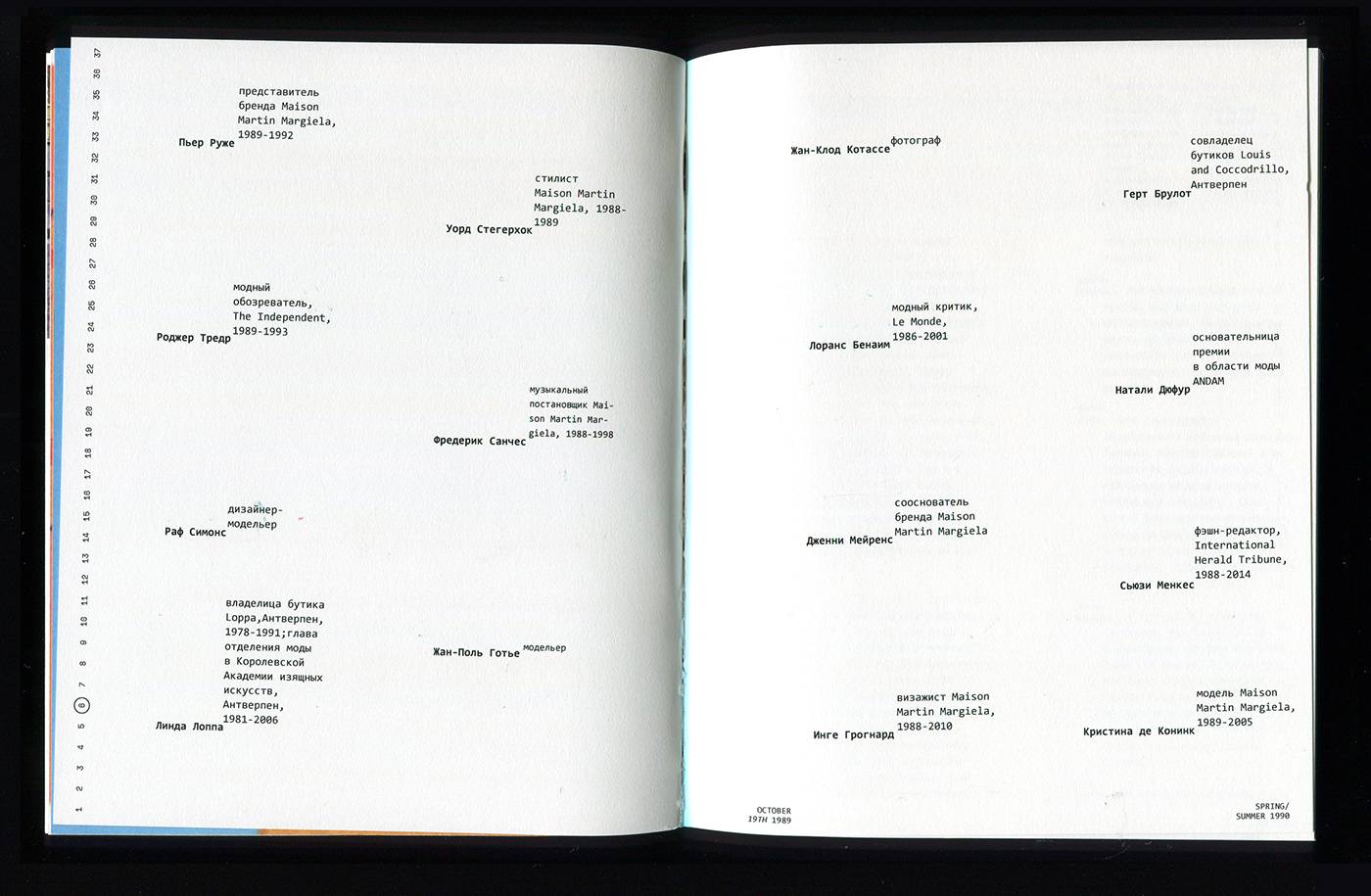 The navigation of the book is arranged in such a way that we count only spreads. They are always listed on the side of the page and are circled in order from 1 to 37. There is also a separate spread in the book dedicated to the music played on the show (there is a QR code for the original recording on the soundcloud), as well as spreads with a little history about the area itself, which served as a platform for the show.