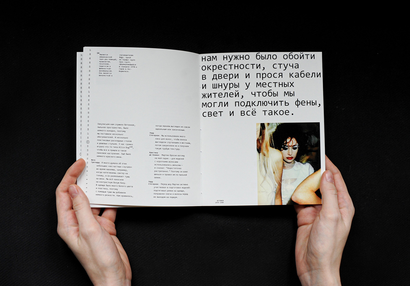 The book contains a metaphor for a play with characters – monologues by Martin’s friends, colleagues, models and other participants in that event. There are also 11 acts-chapters in which the action of the show unfolds. Invitations for the guests were drawn by local children, who later became participants in the show itself.