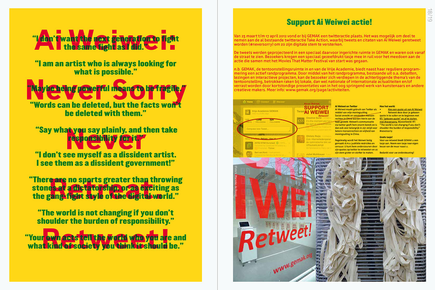 GEMAK was an exhibition space. It offered artists an inspiring platform for provocative projects. GEMAK’s exhibitions were accompanied by lectures, interviews and debates, where art provided the inspiration rather than the subject.