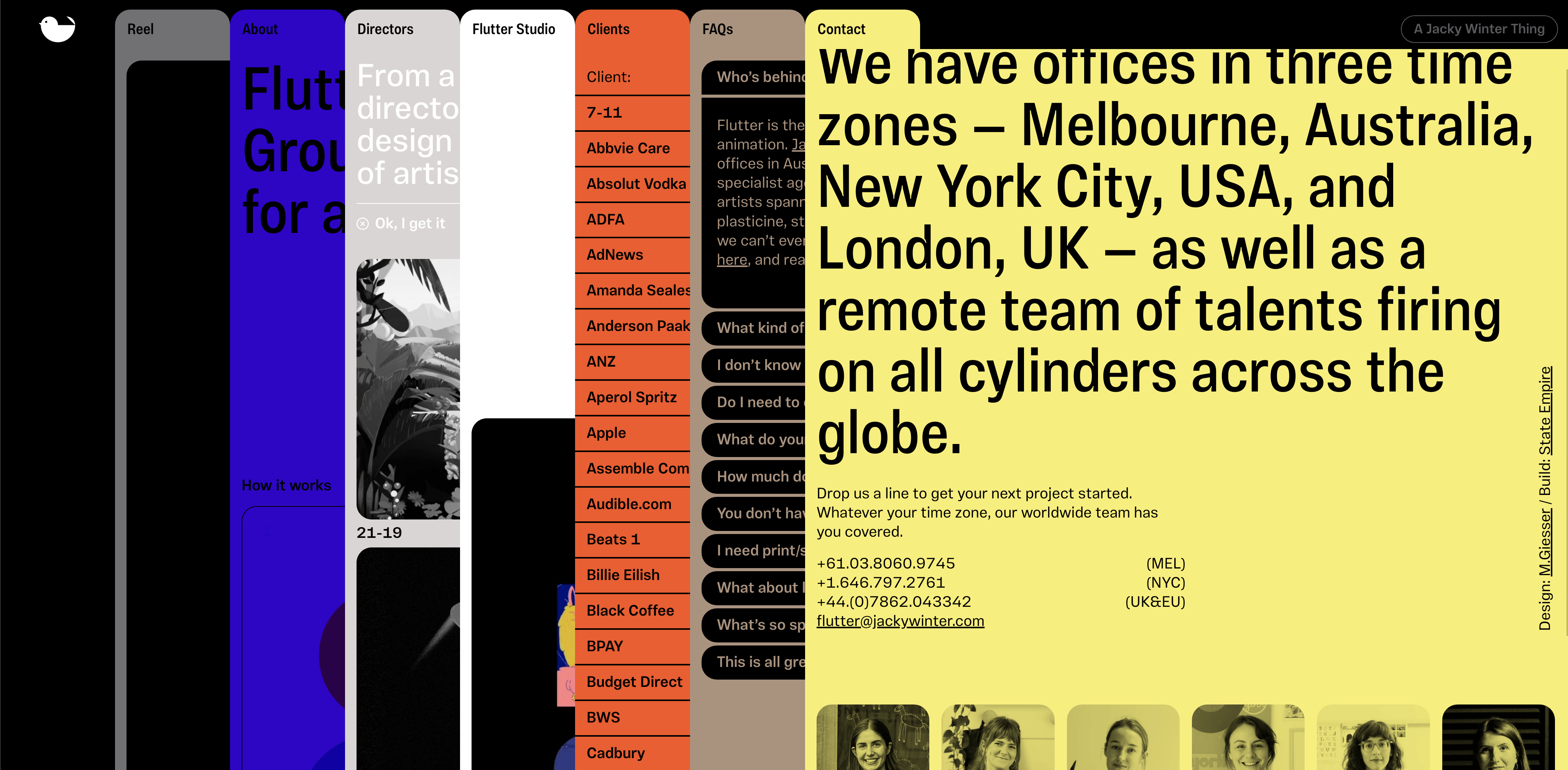 Oh the joy of seeing type and illustration interact in perfect sync! To see different styles taking up the space that once were letters. To see big type, to see small type, to see our type – served as a variable font – used in such a lively design and cool website. Amazing work by Jacky Winter. Wordmark animated by Jordan Booker.