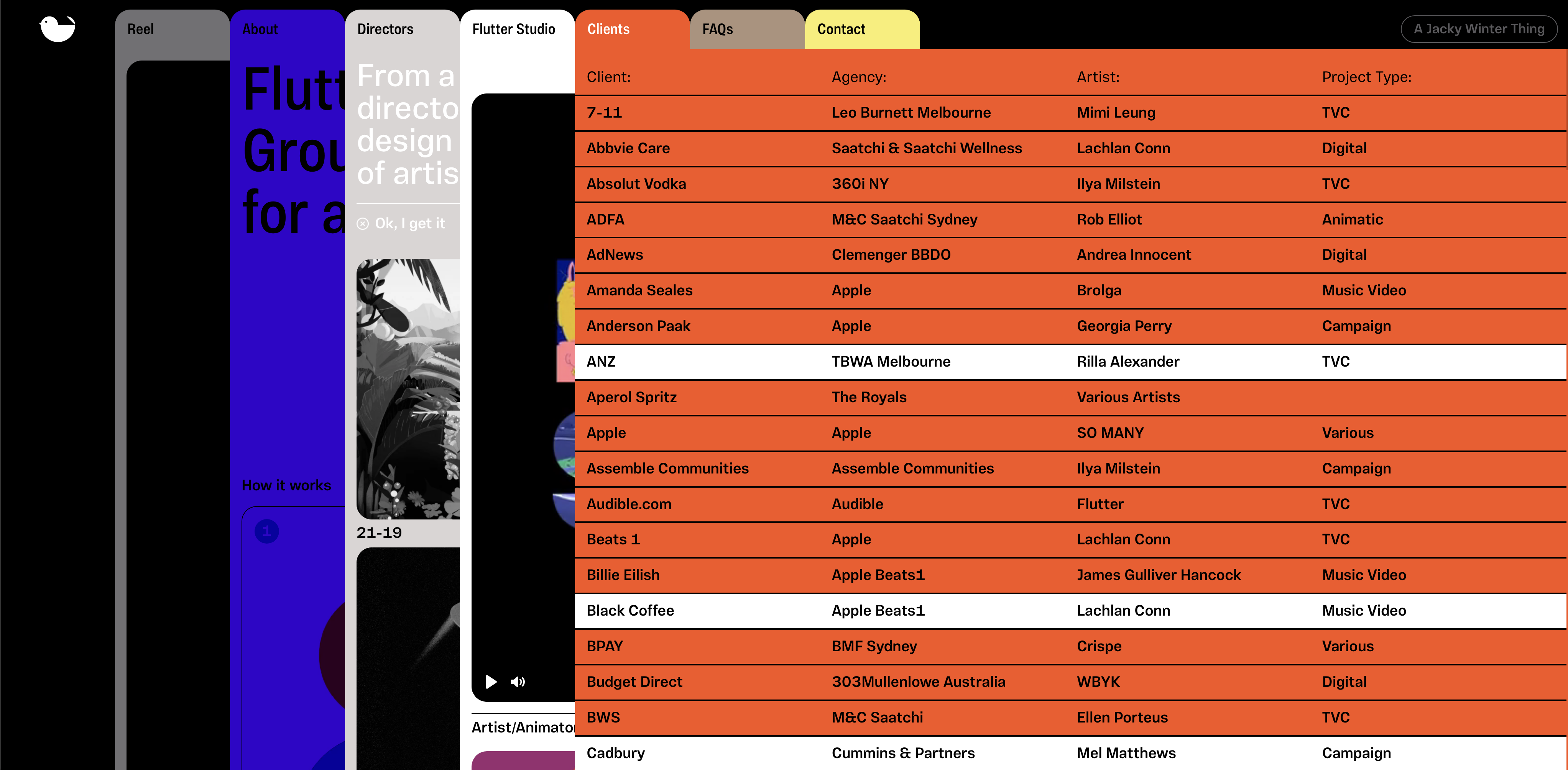 Vinila (designed by Flora de Carvalho, available from Plau) is a perfect sidekick for the artists styles, lines and shapes. But it isn’t too far behind in helping to set the mood for Flutter Productions, a Jacky Winter Group initiative for all things animated.
