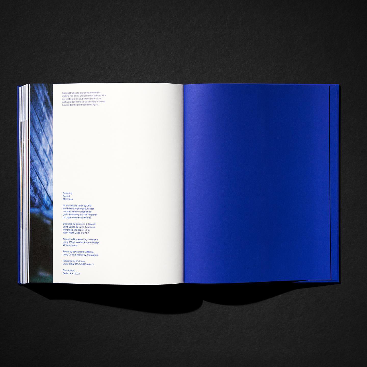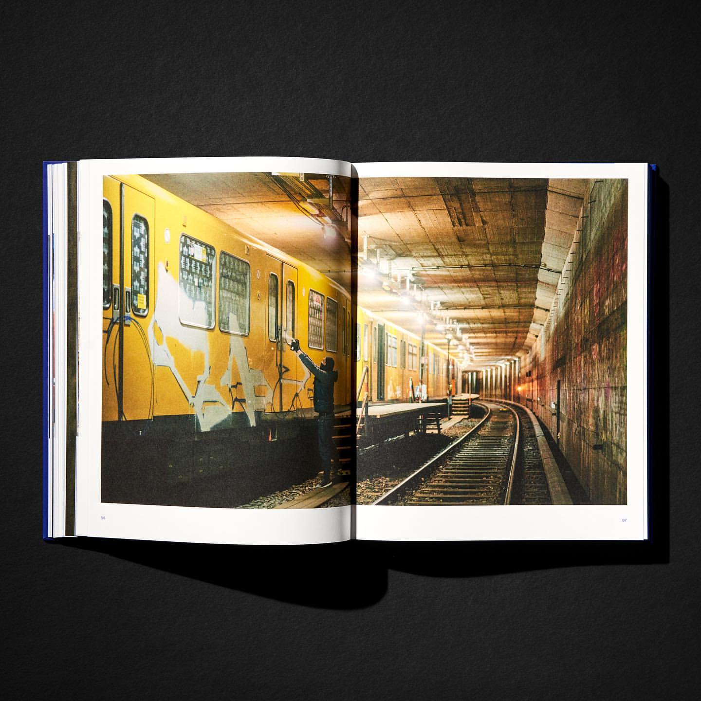Out of the blue, the DRM unlock the hatch of an emergency exit and take us into the vast subterrane of Berlin. An otherwise secluded world unfolds – dark and dusty concrete caves where time seems to stand still. Exclusive, atmospheric shots from the subway tunnels, all taken between 2016 and 2020, fill the void. Depicting recent memories is about hardships and friendships after years in the game. Berlin heavyweights Acid79, Micro, Shus, Area, Tok, Mad and Edward Nightingale unveil their diaries, almost perpetuating the sensation of a moist t-shirt on your face from a makeshift mask when the next traffic is passing by. Meticulously painted graffiti with attention to detail is reflected in the choice of materials, all devotedly designed by Deutsche und Japaner.