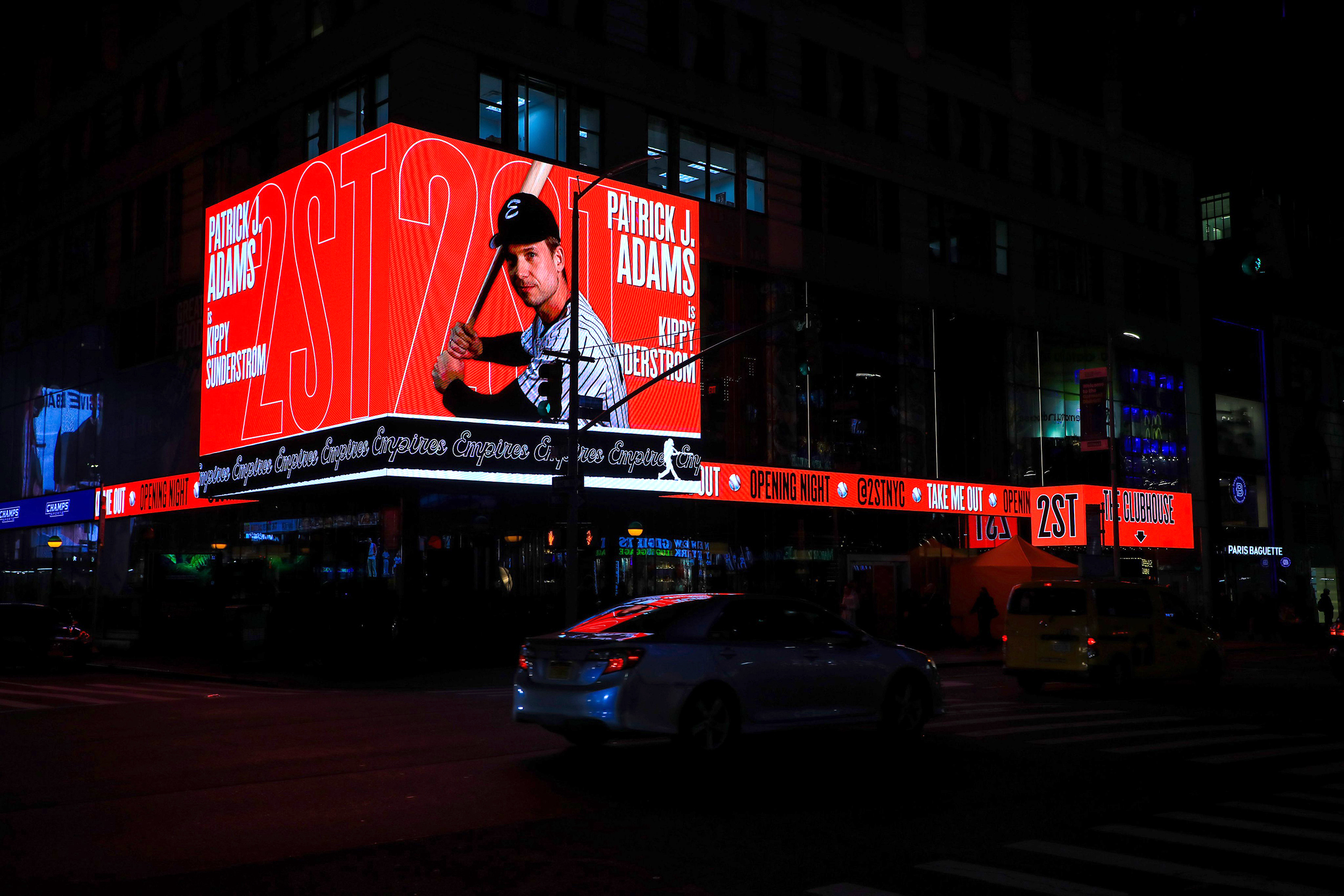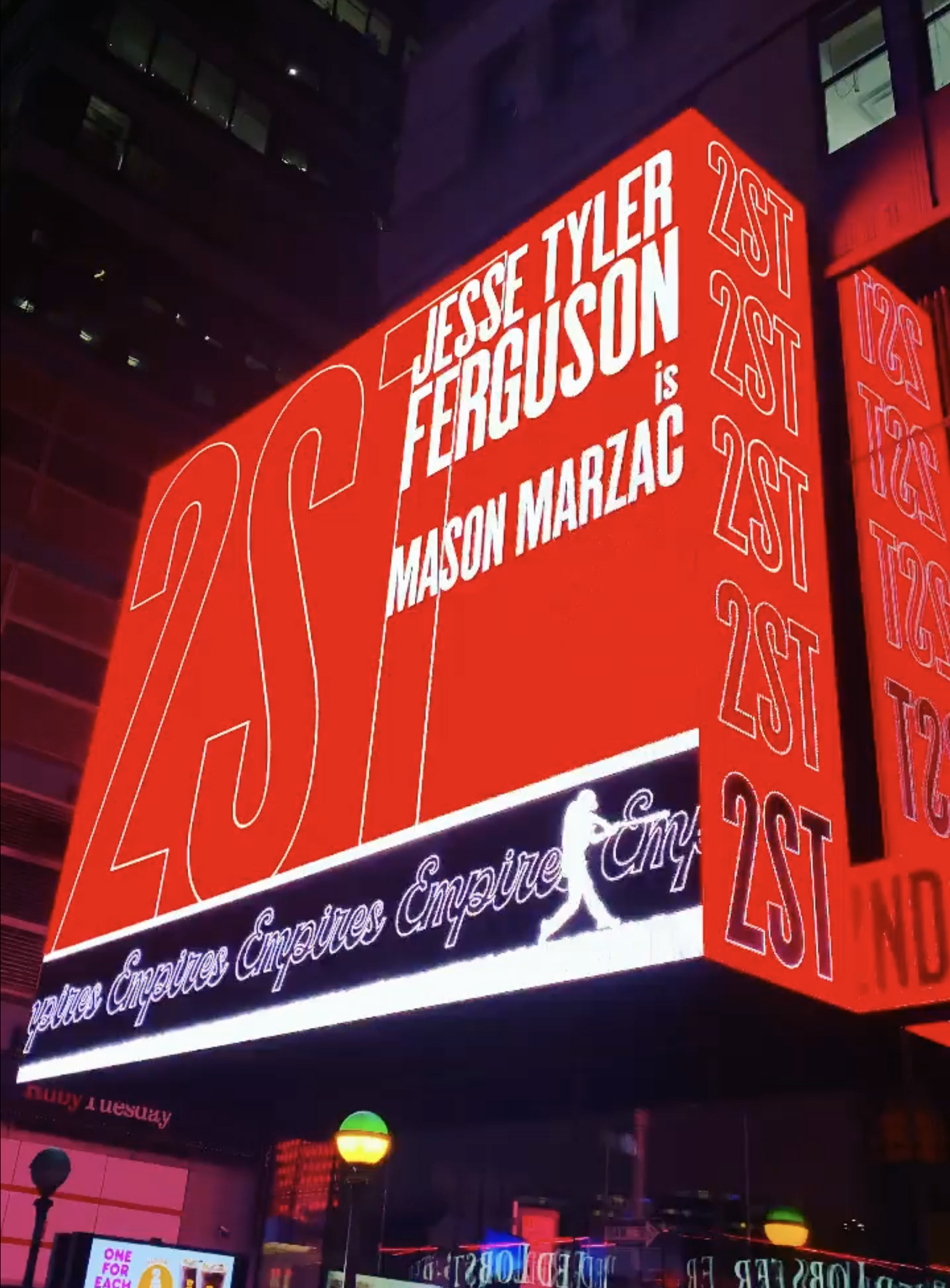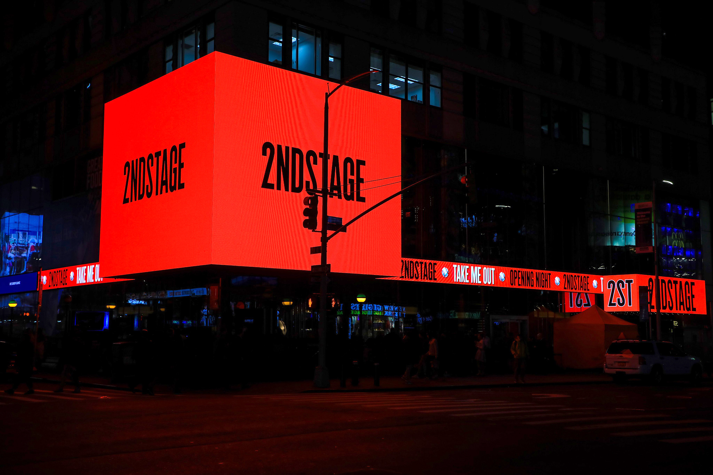 Second Stage celebrated the play’s opening night with a video billboard in Times Square, New York. Alias Cactus is used throughout. The installation was designed by Zipline Media, in a system originally developed by 2x4.