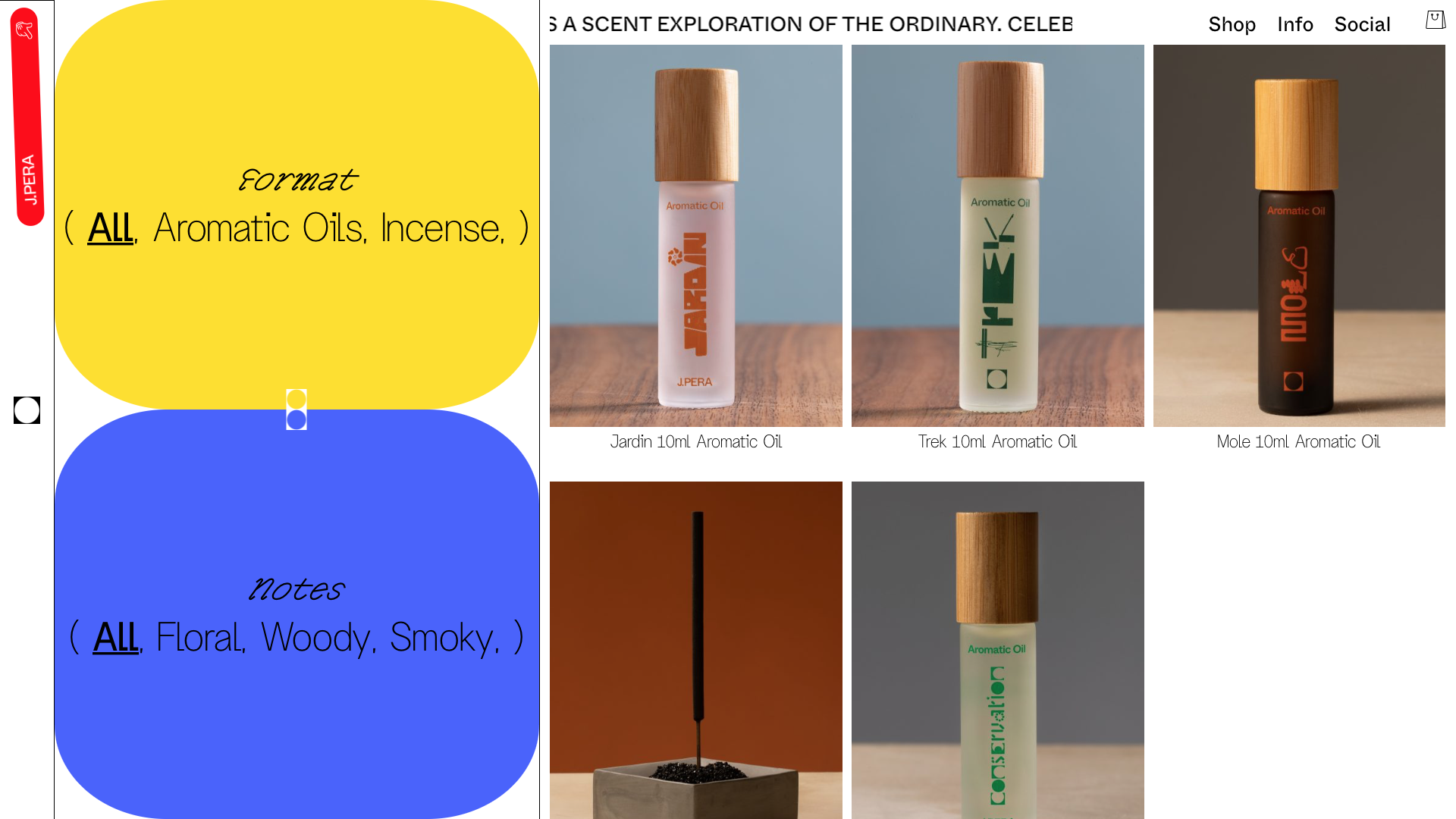 J.Pera is a small-batch hand-made fragrance studio based in Los Angeles. It was founded in 2020 by artist and lead scent-maker, Jill Zachman. Joining Jill is the creative director and co-scent maker Carlos Avila; together, they form a partnership that develops intriguing narratives that serve as the foundation for innovative scent products with bold designs for intrepid people of all backgrounds.