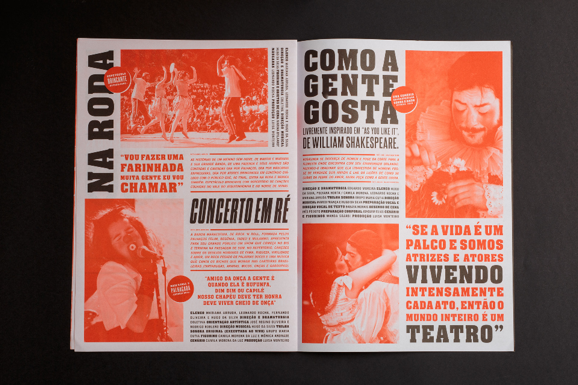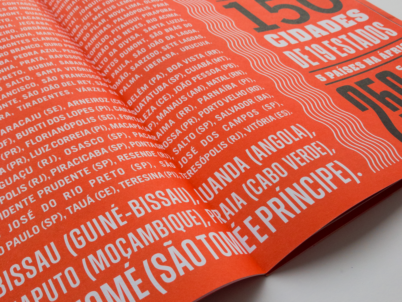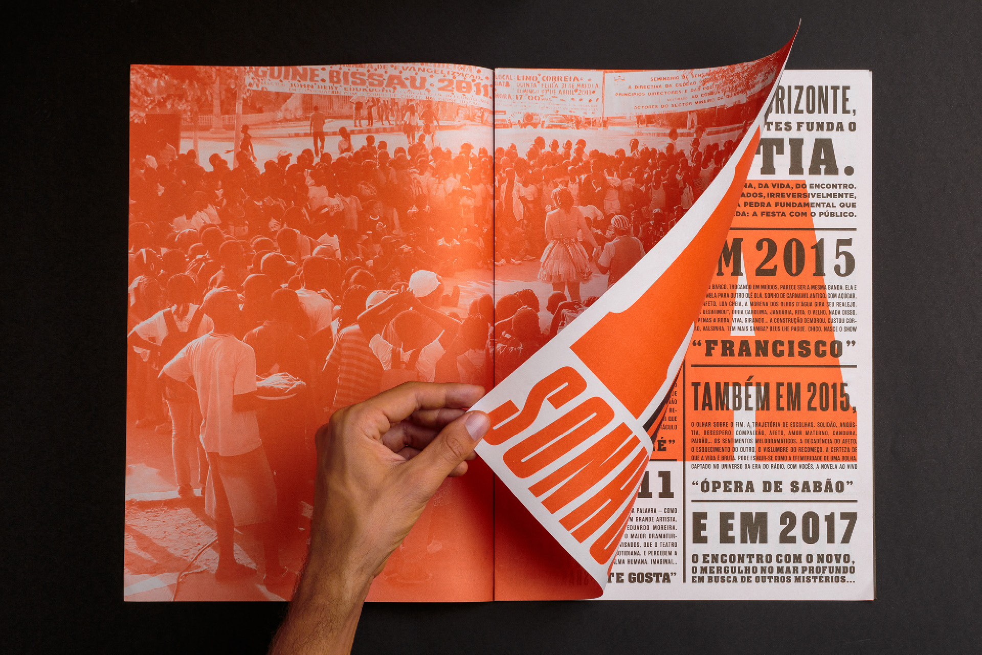 Another important aspect of the project is its vibrant orange Pantone color. In addition to posters and flyers, the group distributed a free commemorative newspaper composed of images and texts that narrate the company’s trajectory.