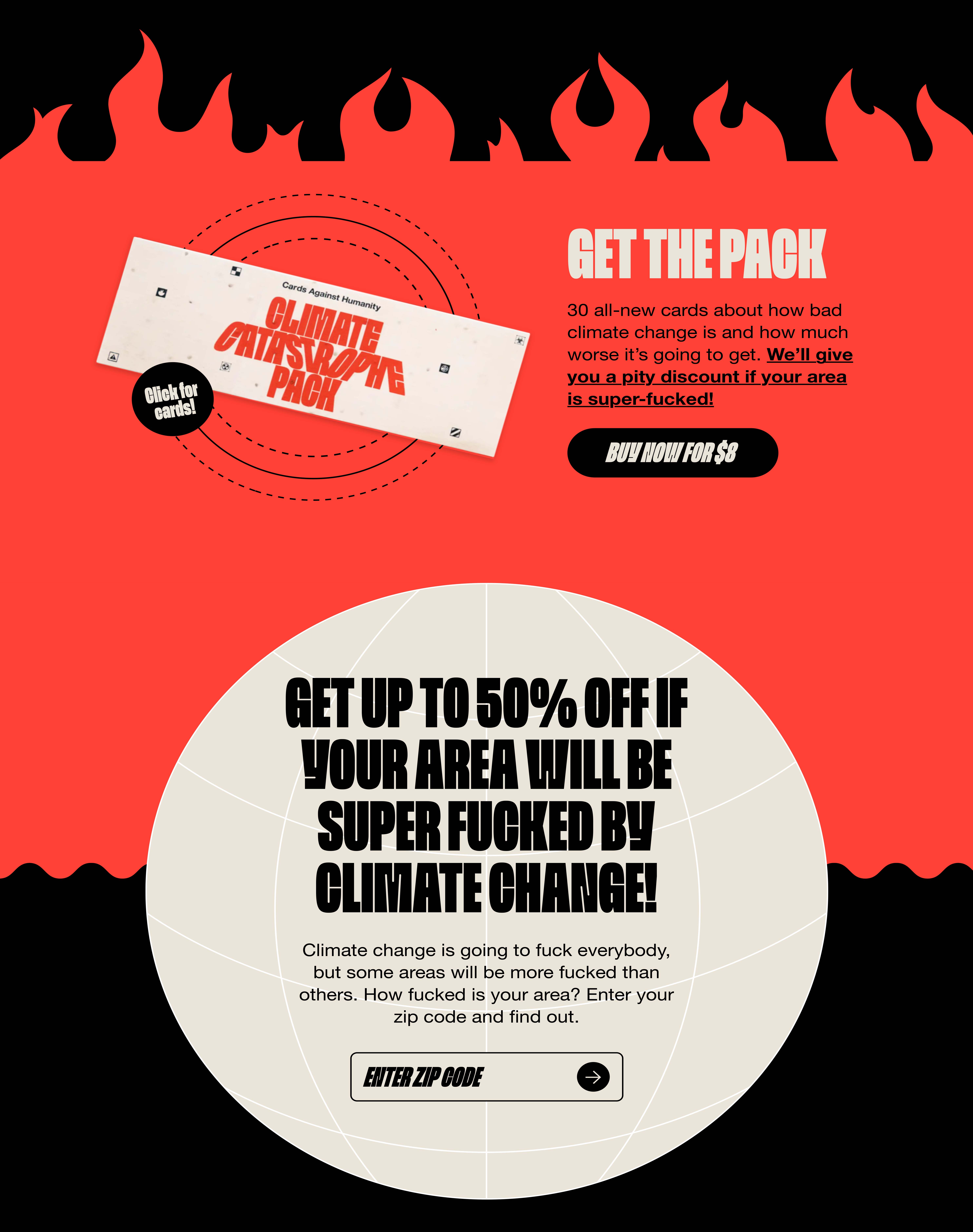 It’s 2021, and humanity is broken. The world cannot get its shit together to do anything about climate change. That’s why we’re releasing the all-new Climate Catastrophe Pack, which comes with 30 cards about how fucked we all are. 100% of the profits will go to @rainforestcoalition to help stop deforestation. The pack also comes with thousands of tree seeds you can plant yourself.