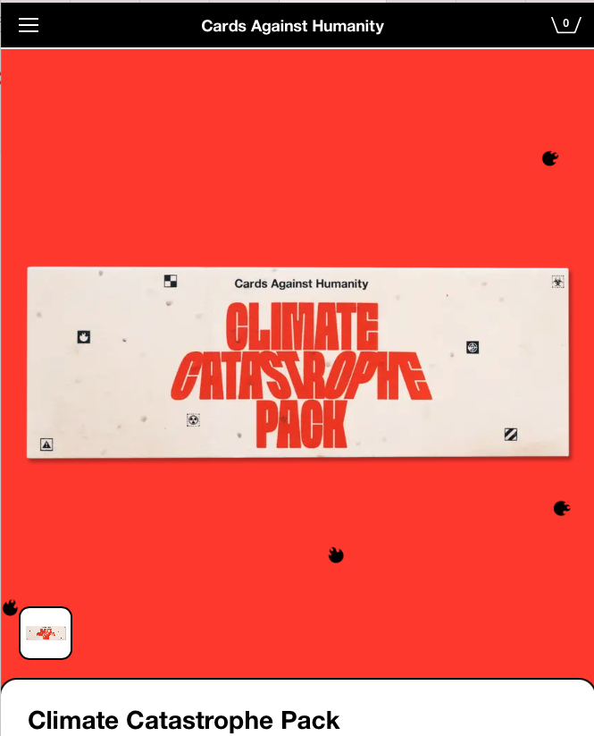 Cards Against Humanity released the Climate Catastrophe Pack: