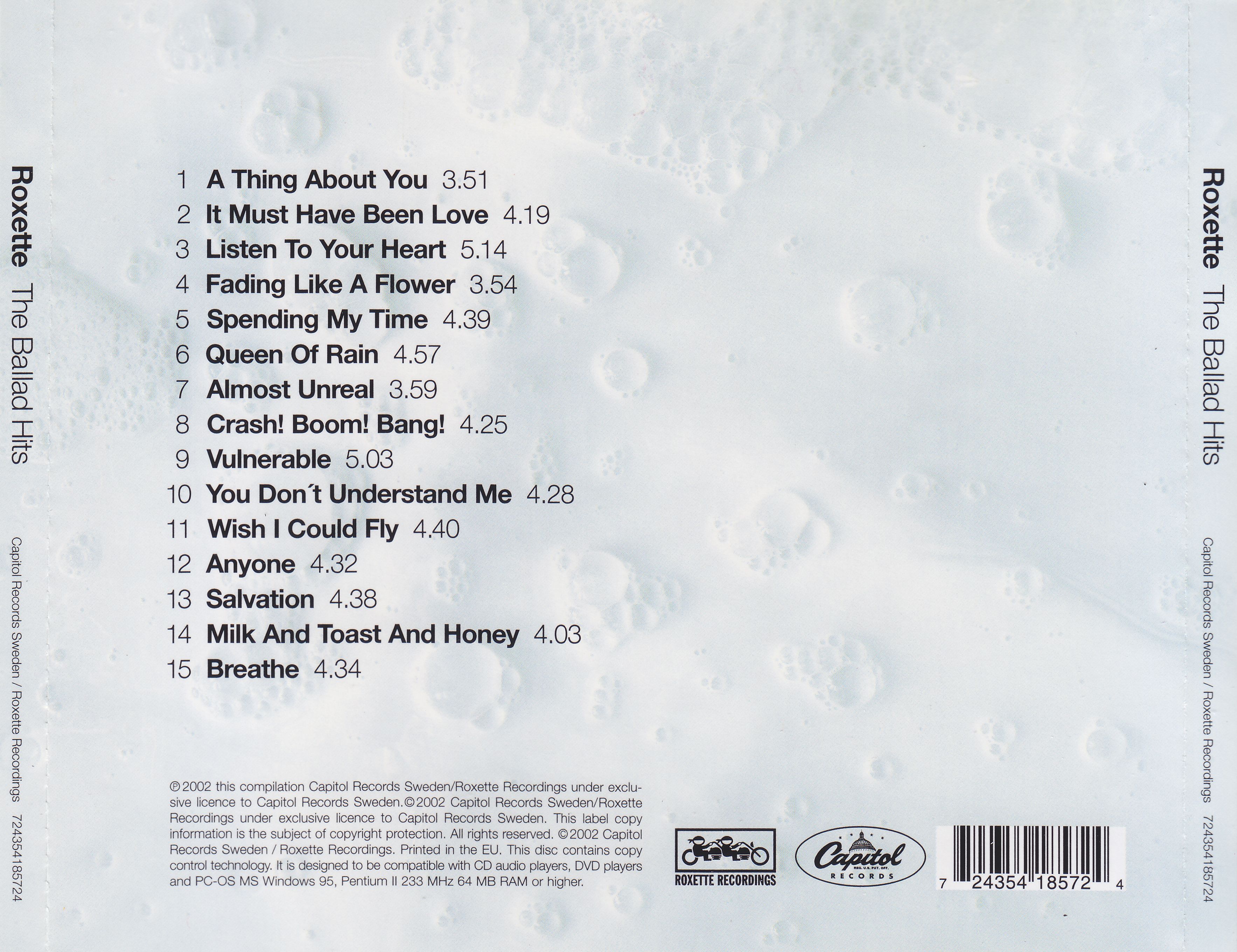 The Ballad Hits is the second greatest hits compilation album by Swedish pop duo Roxette, released on 4 November 2002 by Roxette Recordings and Capitol Records. It was the first of a two-part series of “best of” albums released by the duo in quick succession, and was followed by The Pop Hits in March 2003.