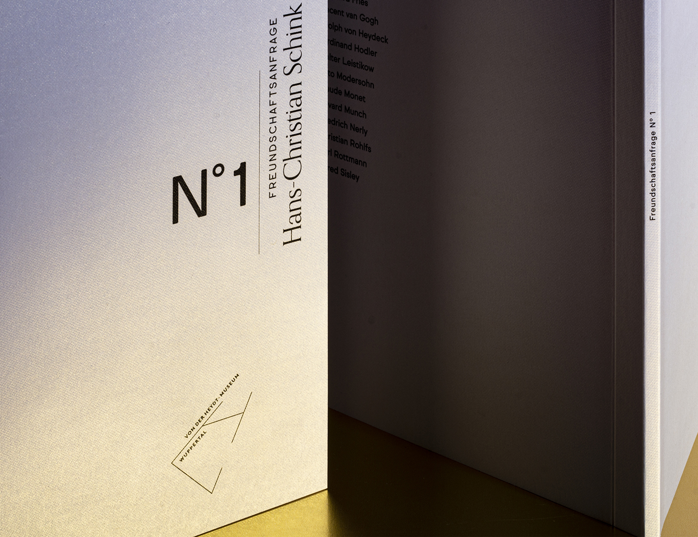 Typography and book design of the catalog for the exhibition series Freundschaftsanfrage at the Von der Heydt Museum Wuppertal.