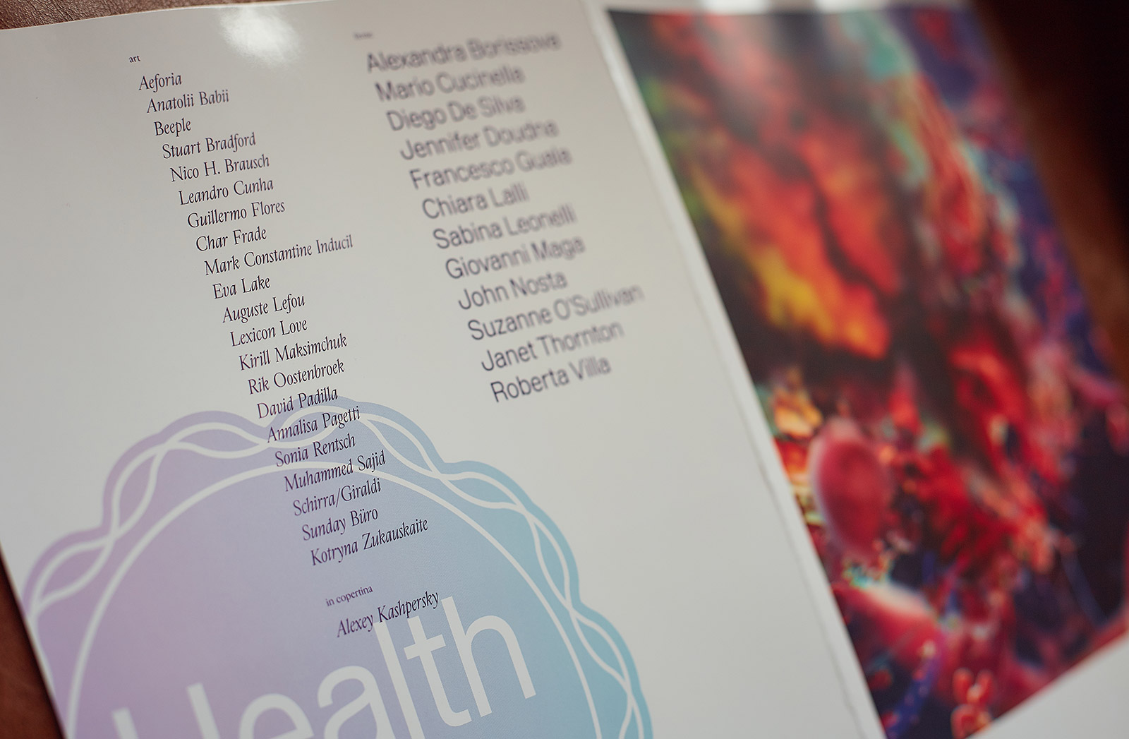 Pitis e Associati were in charge of the art direction and editorial design. They invited almost two dozen artists and illustrators who came up with fantastic imagery that accompanies and enriches the various features and articles. The cover shows a 3D graphic of a human immunodeficiency virus by Ukrainian-born artist Alexey Kashpersky.
