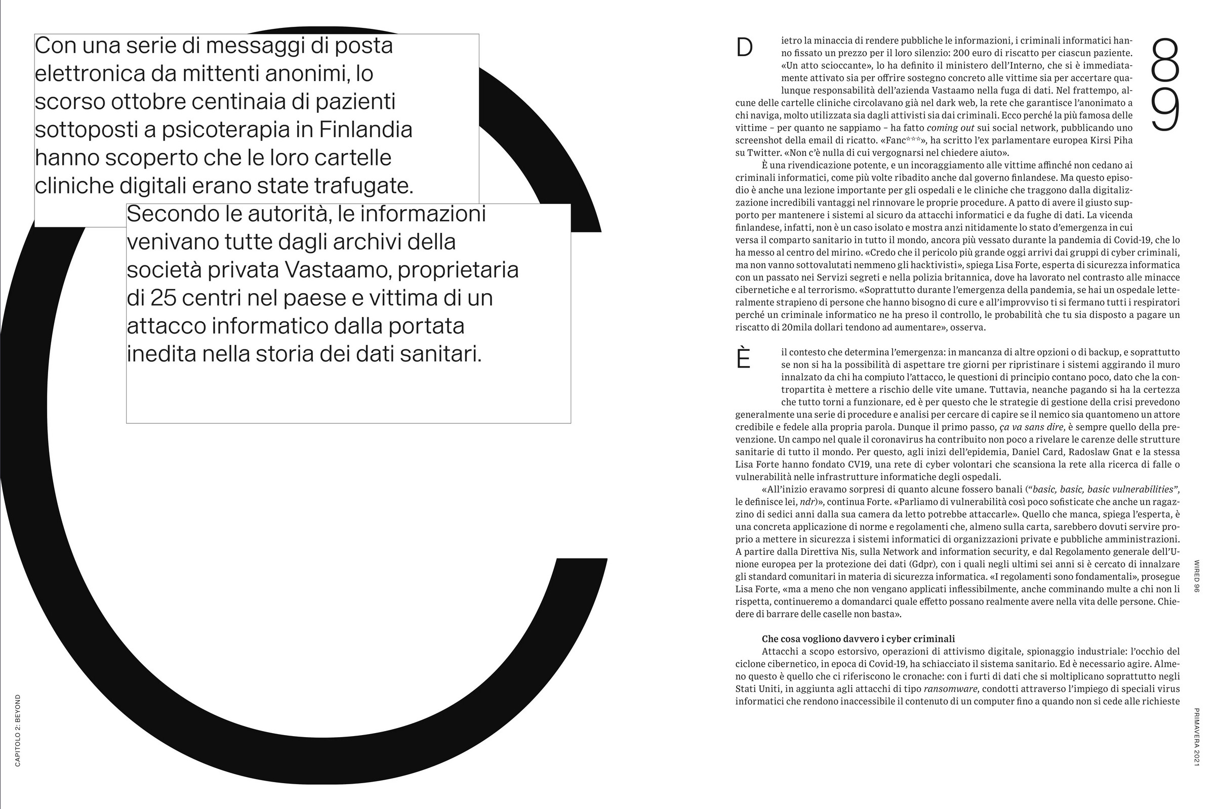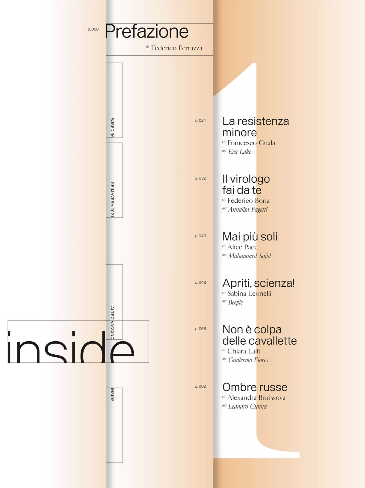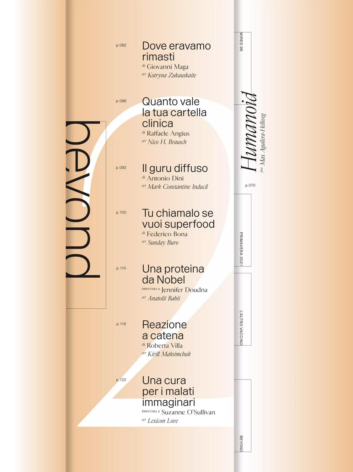 Wired Italia is a quarterly bookazine. Last year’s spring issue was entirely devoted to the topic of health, and entitled “L’altro vaccino” (“The other vaccine”). In a time dominated by the Covid-19 pandemic, medical research has not stopped. The special Health Edition has stories from laboratories around the world, of pharmaceutical companies, doctors, scientists and researchers who have moved on and continued to make breakthrough discoveries, develop drugs and cures that could save or extend our lives, and explore new horizons in medicine and biology.