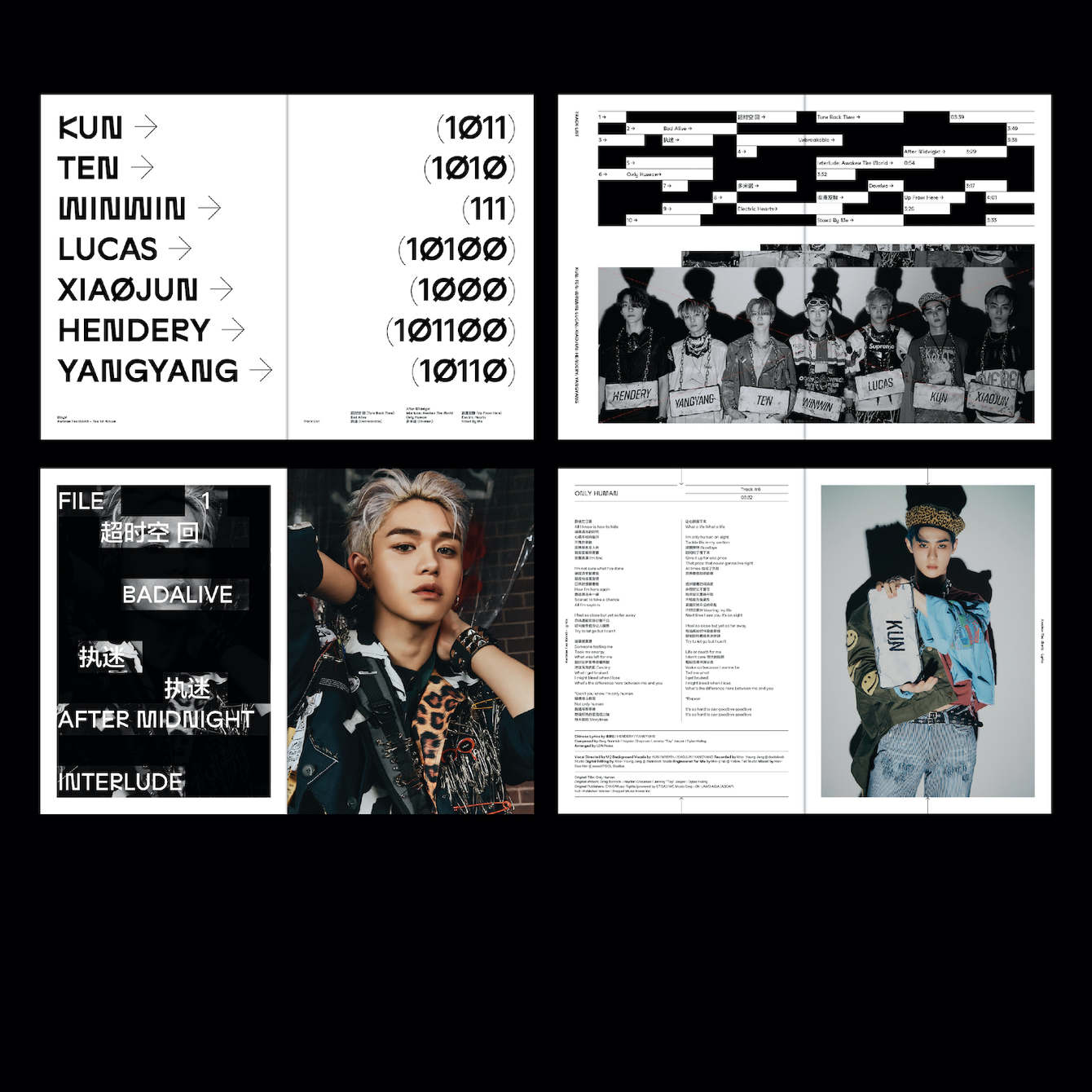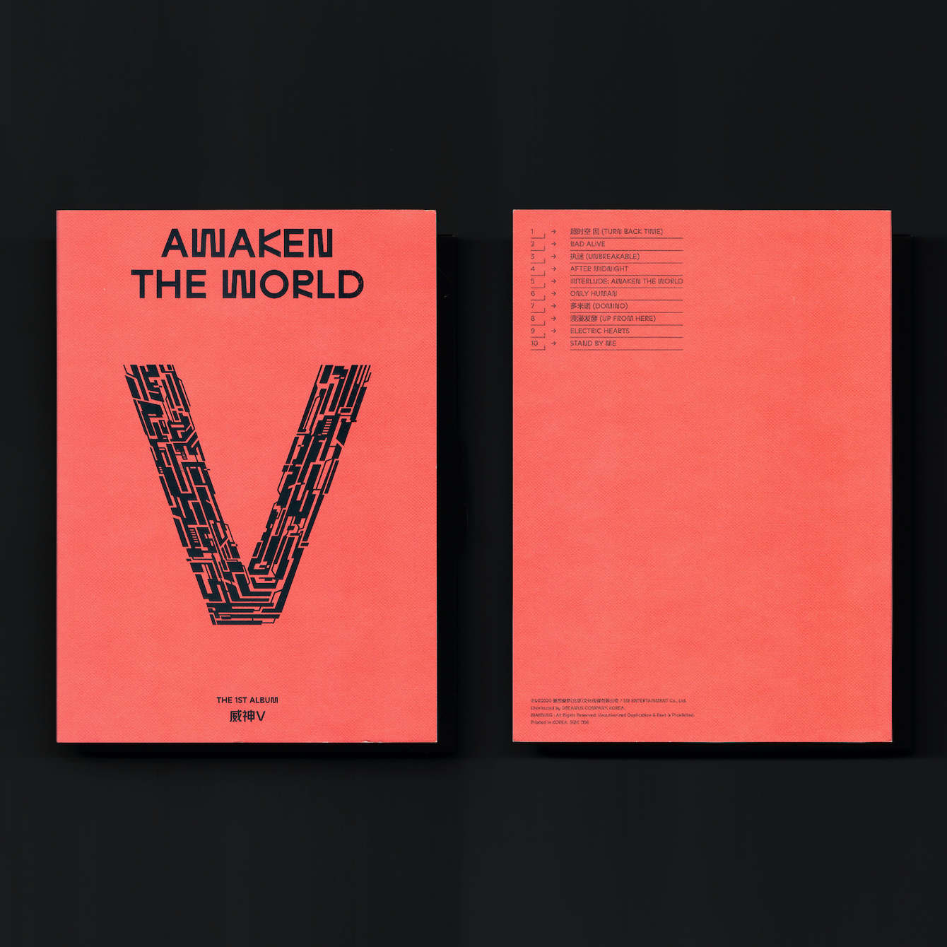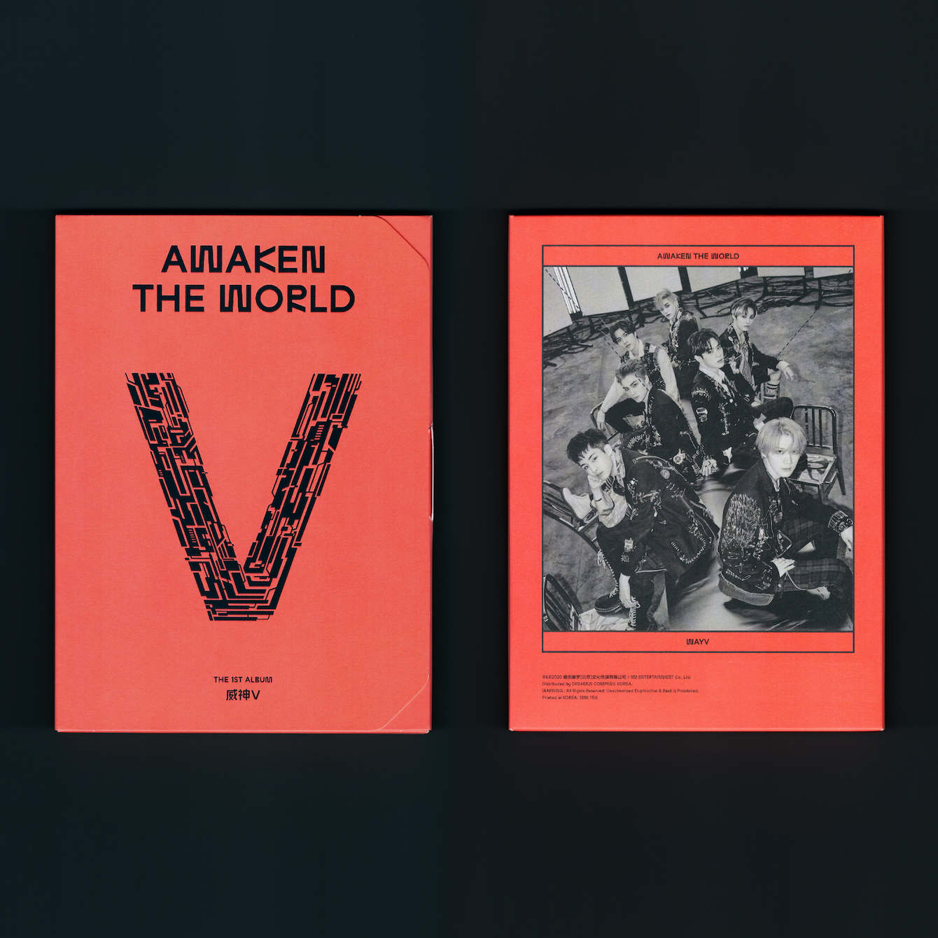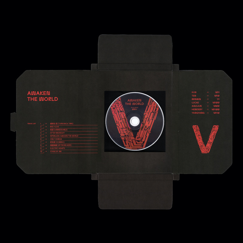 Awaken the World is the debut studio album from WayV, the Chinese sub-unit of the South Korean boy band NCT. Designed by Studio Odd Hyphen, the album was released in two versions, both featuring Studio Feixen Sans Edgy Bold throughout the album artwork, packaging, and marketing media. The titles of the poster series are set in Neue Helvetica Black Extended. The few details with Chinese text are set in a yet unidentified typeface.