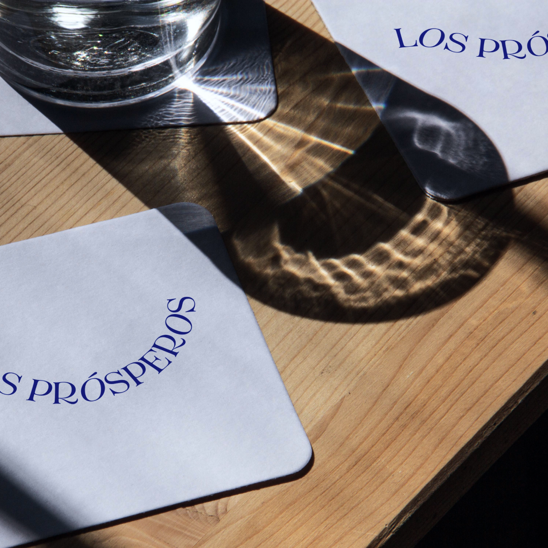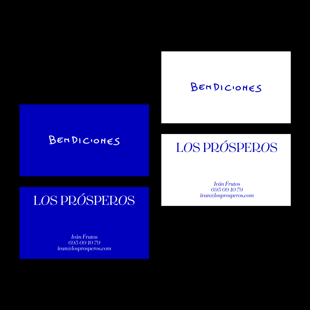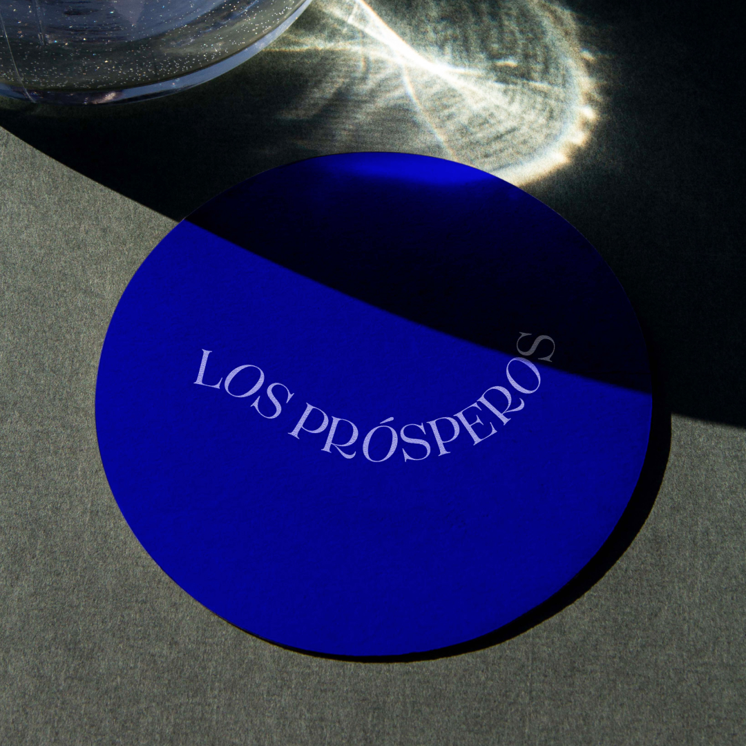 Los Prósperos’ color palette pivots between black and white neutrals and an electric blue accent, which goes hand in hand with Ivan’s outgoing personality, as well as creating a focal point of attention in the branding.