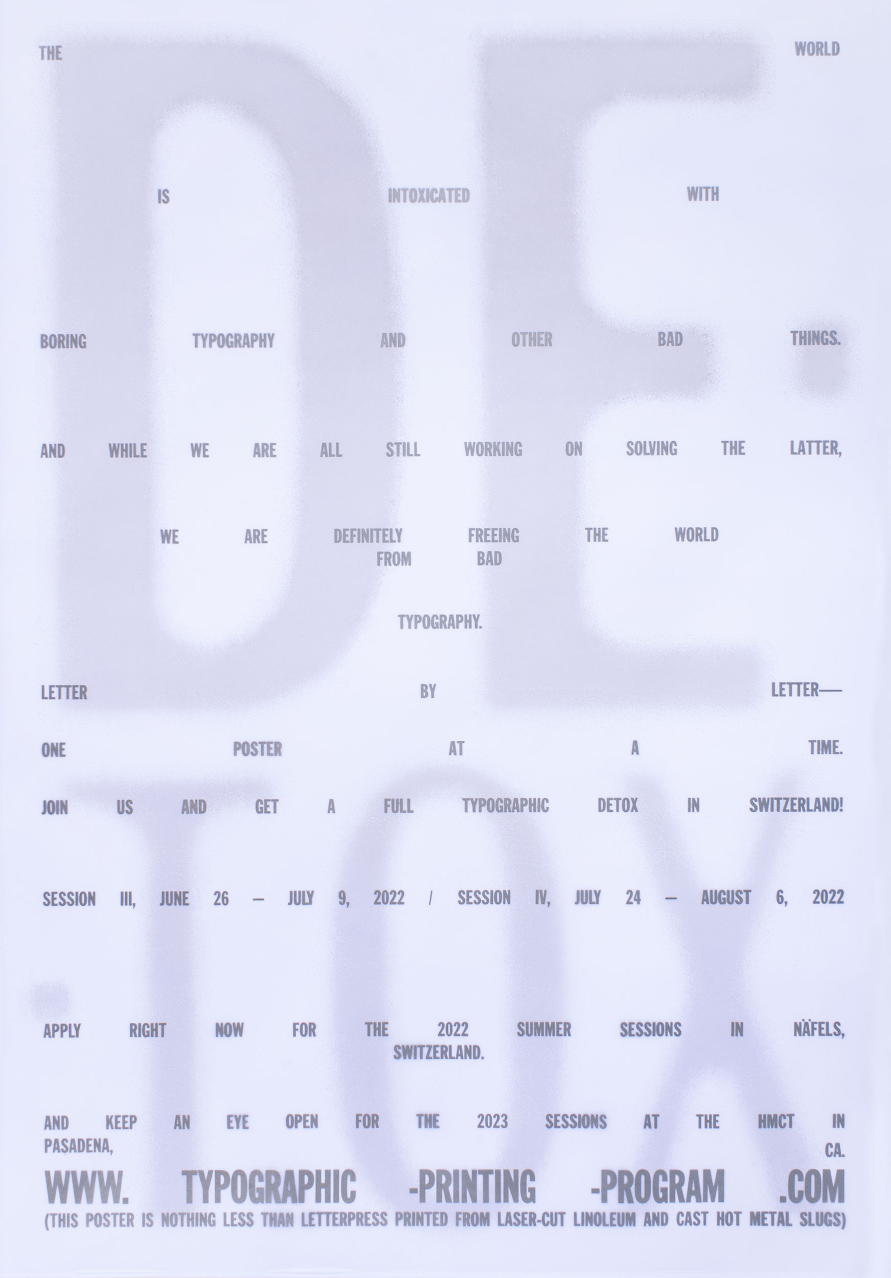 Poster for the 2022 edition of Typographic Printing Program, an intense design program focusing on typography and letterpress printing.