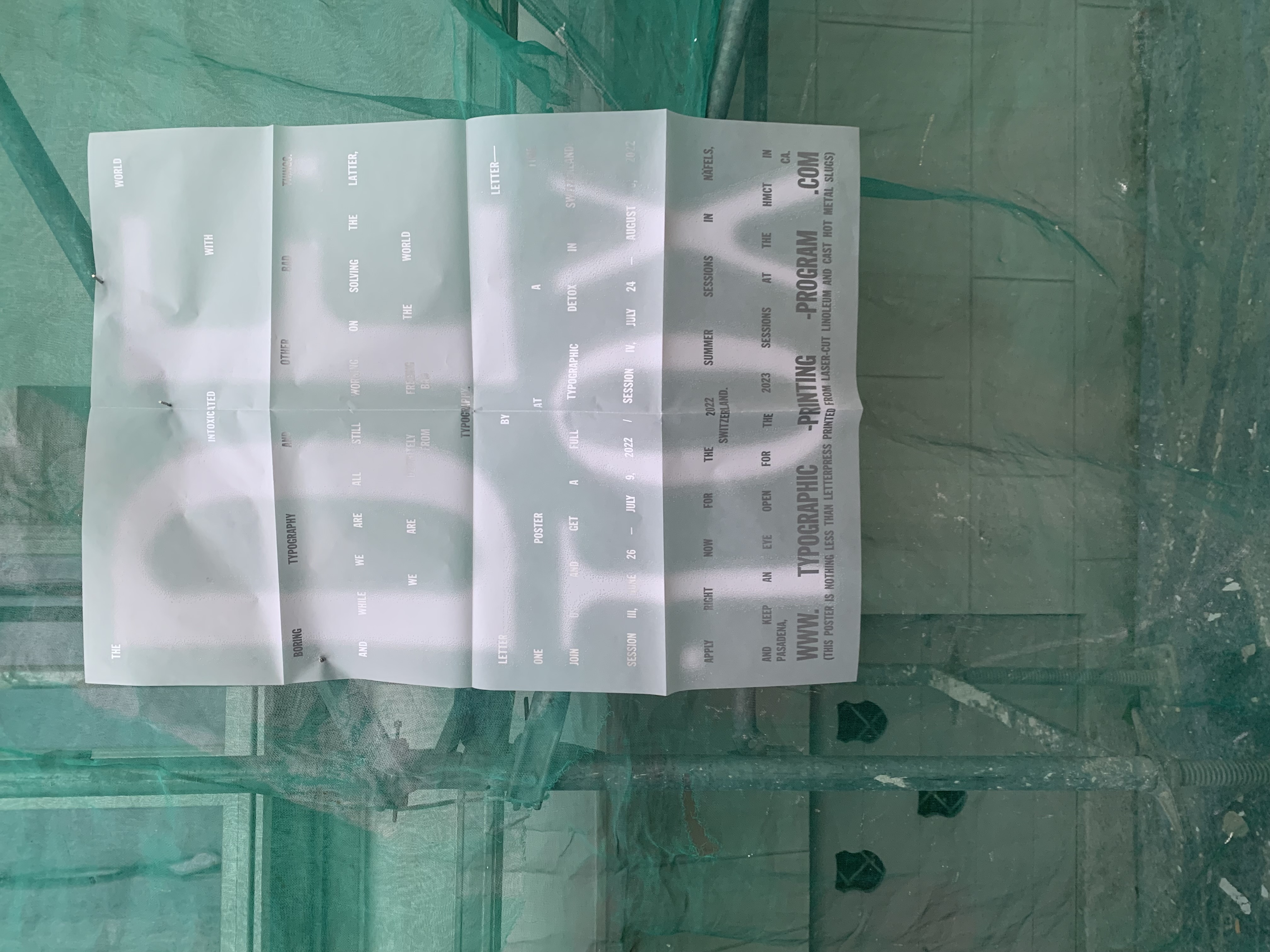 The overall topic was “Typographic Detox”. The white and silver on transparency paper supports the idea of detoxing. In my view, the posters really work! When people hung them over any bad typography posters in the wild, they immediately and actively detoxed their typographic environment – haha!