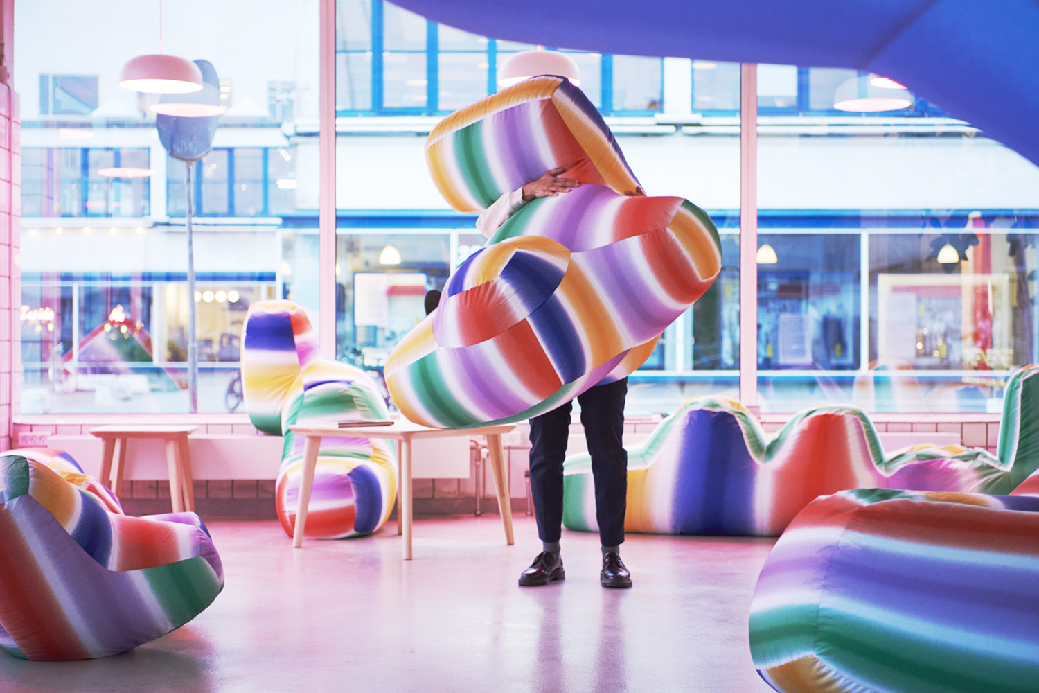 For Kaleidoscopic Home at SPACE10, Tin & Ed present surprising tactile and digital obstacles to provoke visitors to inhabit a ‘home’ in new and creative ways. Graphic identity and poster by Joseph Han with Pimpit by Benoît Bodhuin.