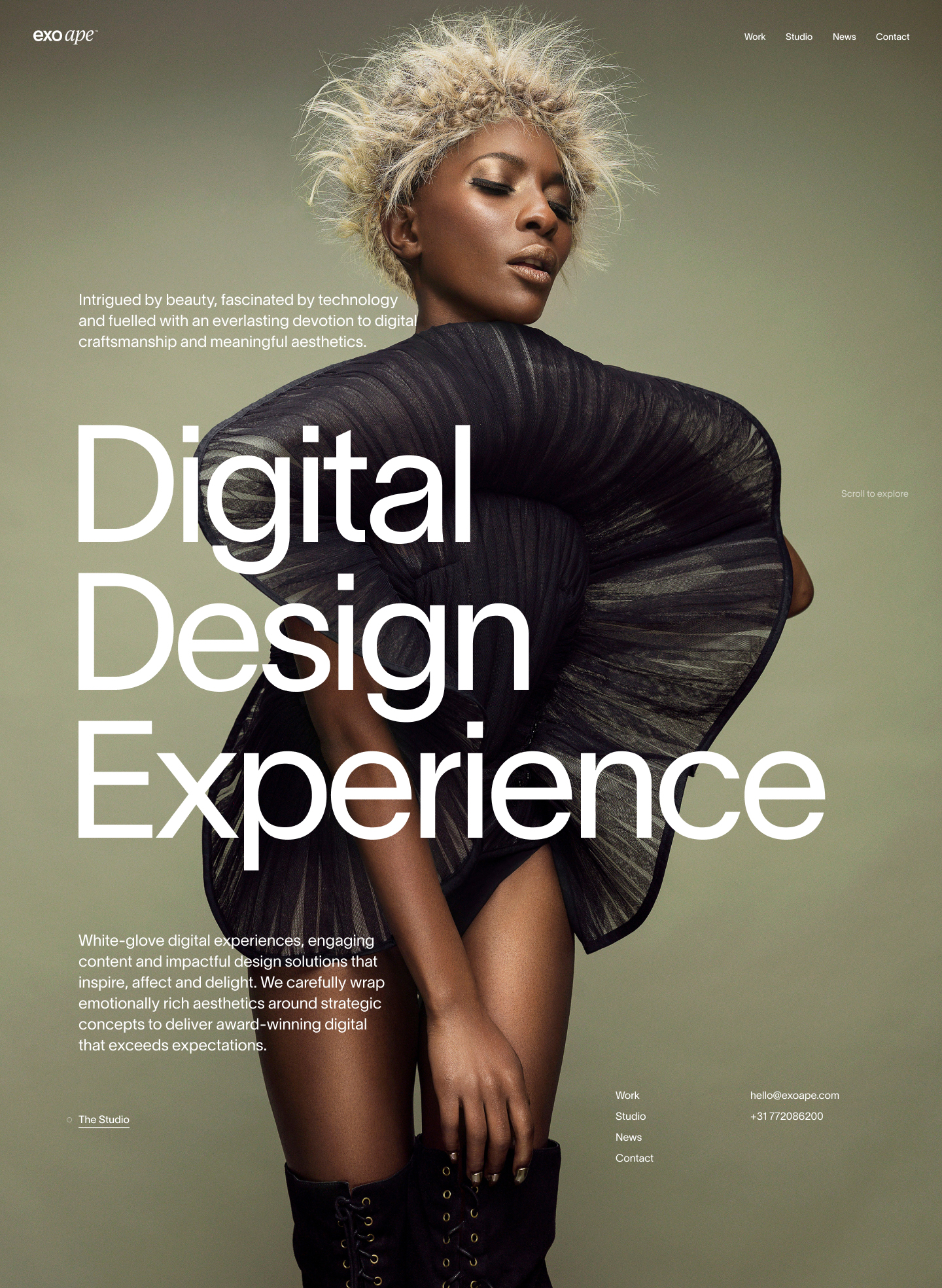 Exo Ape is a digital design studio based in the Netherlands. The typography of their brand new website uses TWK Lausanne: