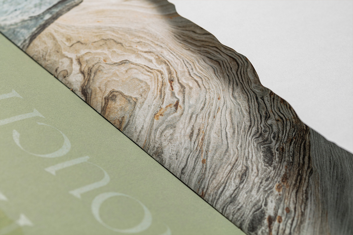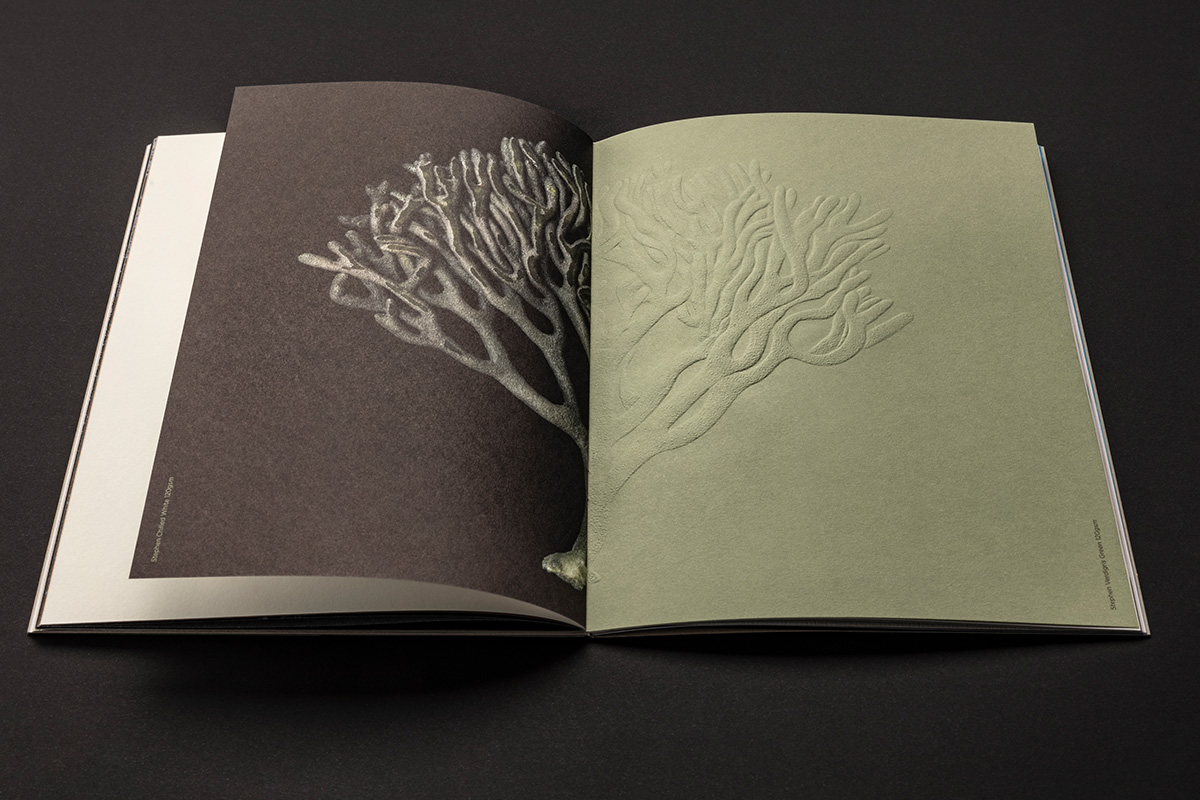 The innovative work of Australian photographer Greg Elms, who created stunning images of foraged items from the native landscape, inspired us to create a theme around the unquestionably tactile character of the Australian natural environment. Spectacular detail was captured both through the lens and flat-bed scanning. From swirling waters to sunburnt sands, exotic sea life to fascinating detailed imagery of flora. We commissioned images that, when combined with Fedrigoni paper, the reader can almost reach out and touch.