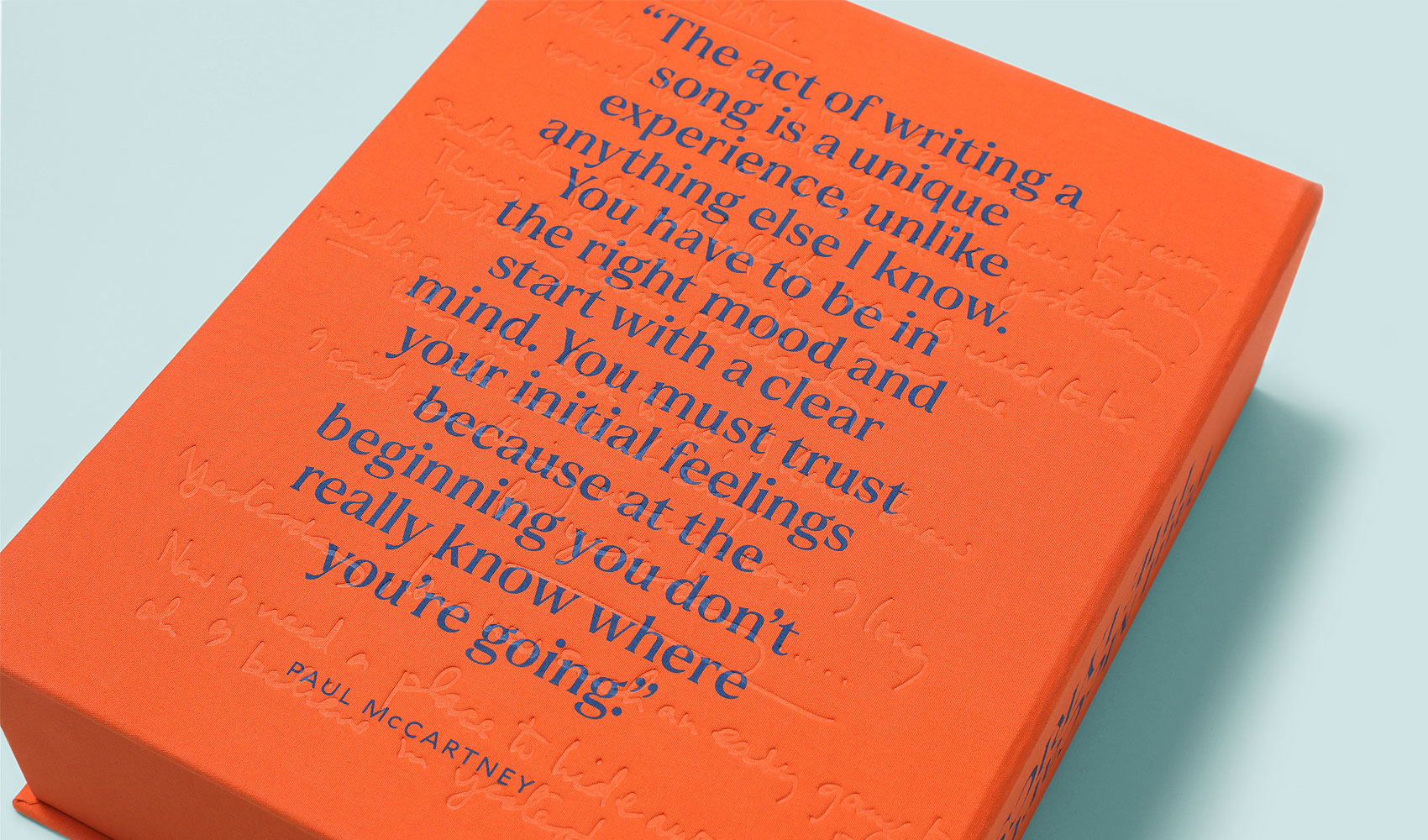 The opportunity to design Paul McCartney’s memoirs was a literal dream project. Like many people, I’m a fan of Paul McCartney, not just in his prolific collaboration with John Lennon, but many of his later songs, with Band on the Run being a favorite. Published by Liveright, Paul McCartney: The Lyrics is a 2 volume set that reaches 874 pages. Inside is a mix of lyrics and personal memories and mementos of his long musical career. There are two versions— one is a widely available standard edition, and the other is a limited signed and numbered edition of which only 175 were sold.
