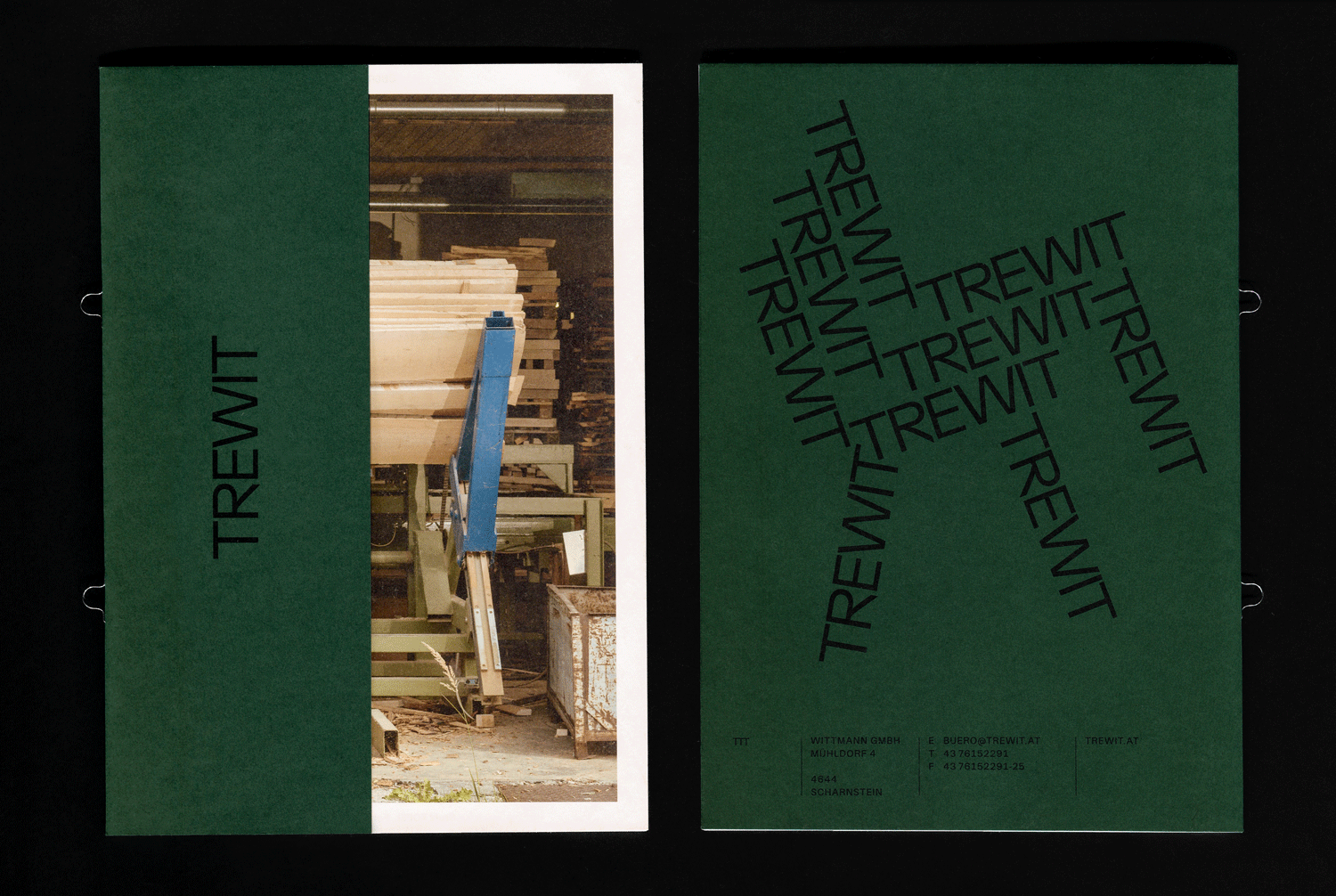 The traditional company stands for solid wood furniture and series production of the highest quality. After 142 years, the family name Wittmann was replaced by the new brand name TREWIT, due to a change of generations. The new development of the brand brought with it a fundamentally different appearance — a language of its own was developed not only graphically, but also in its typographic approach.