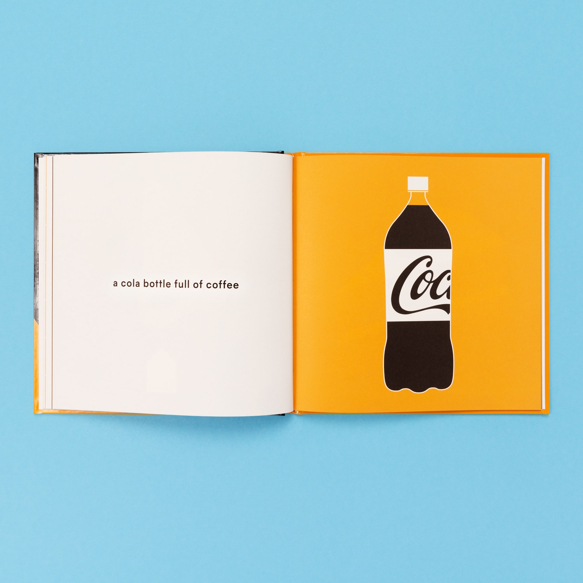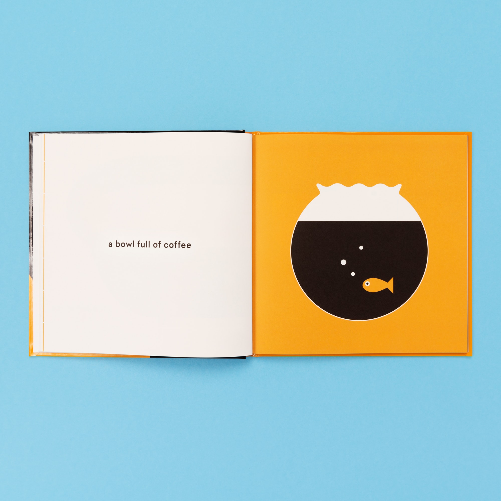 On alternating pages, this caffeine-colored book serves you coffee and tea in various forms and flavours. It begins with a simple cup of coffee but quickly becomes more absurd with things such as coconuts filled with tea, buckets of coffee or dogs filled with tea, until both beverages find common ground in the same pile of dishes on the kitchen sink. A perfect companion for all coffee or tea tables.